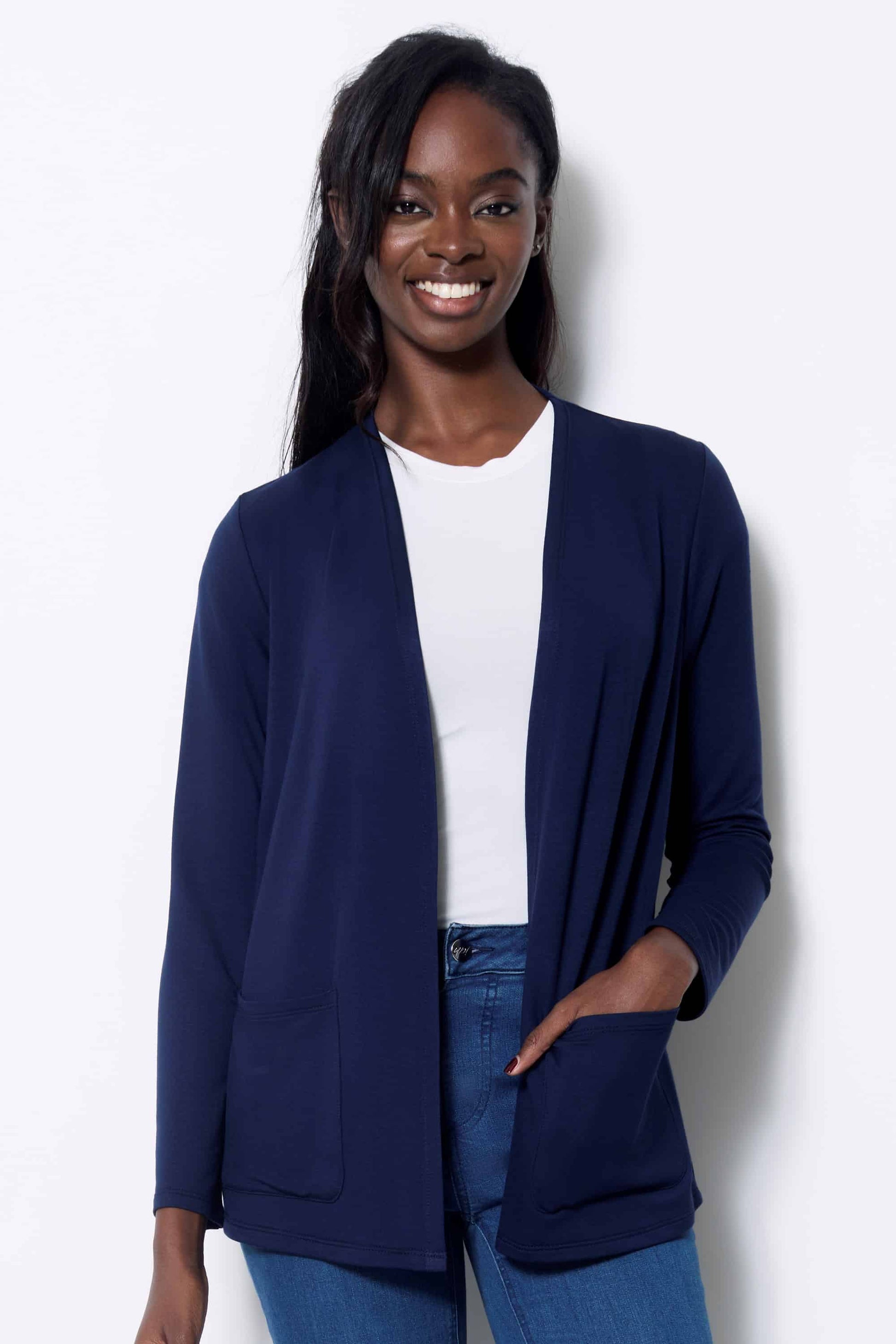 Long Sleeve Solid Colour Open Front Cardigan. Style UP30413