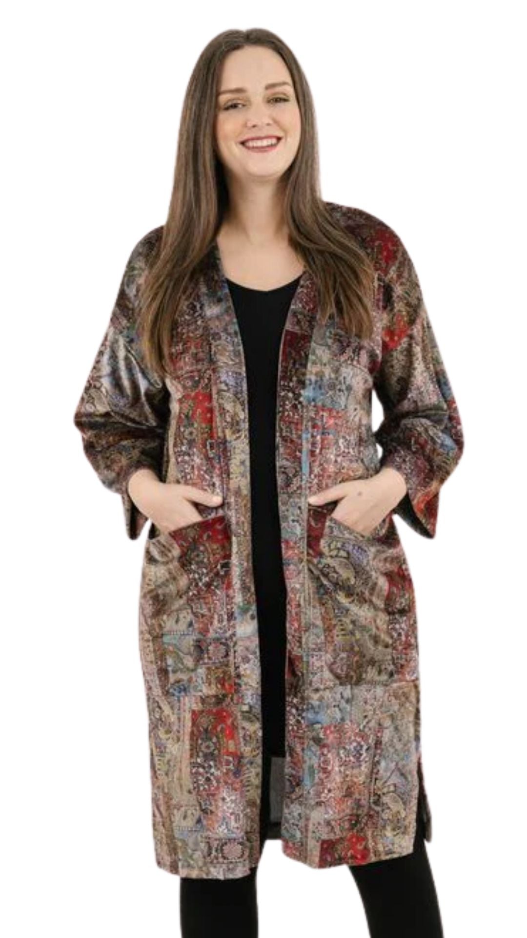 Long Velvet Open Front Cardigan. Style SHNP1821