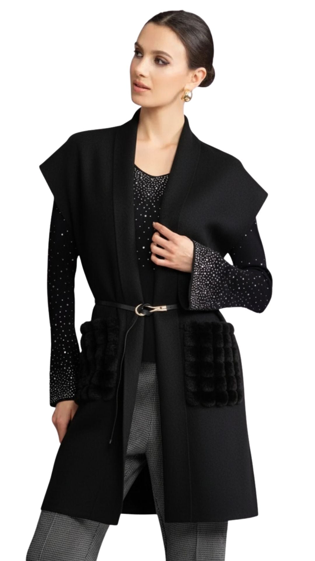 Long Sleeveless Fuzzy Pockets & Belt Cardigan. Style ALSA46475