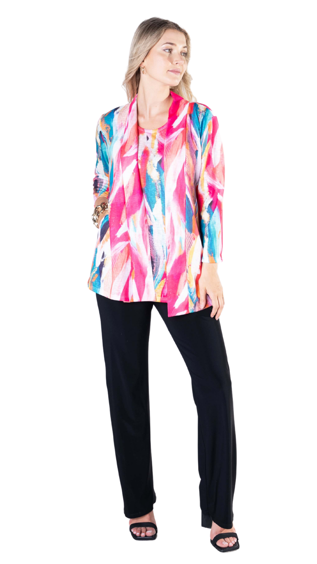 Multi Colour 3/4 Sleeve Open Front Cardigan. Style JDA8040-18