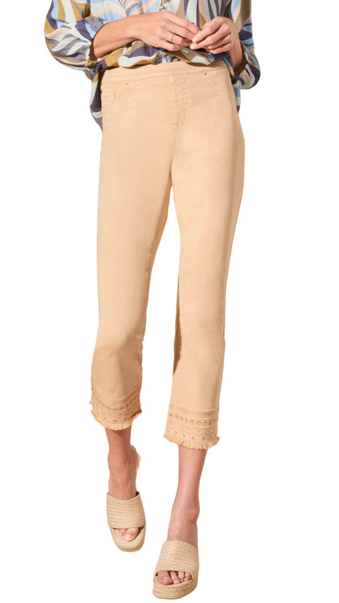 Audrey Pull On Straight Crop with Embroidered Hem. Style TR5806O-4744