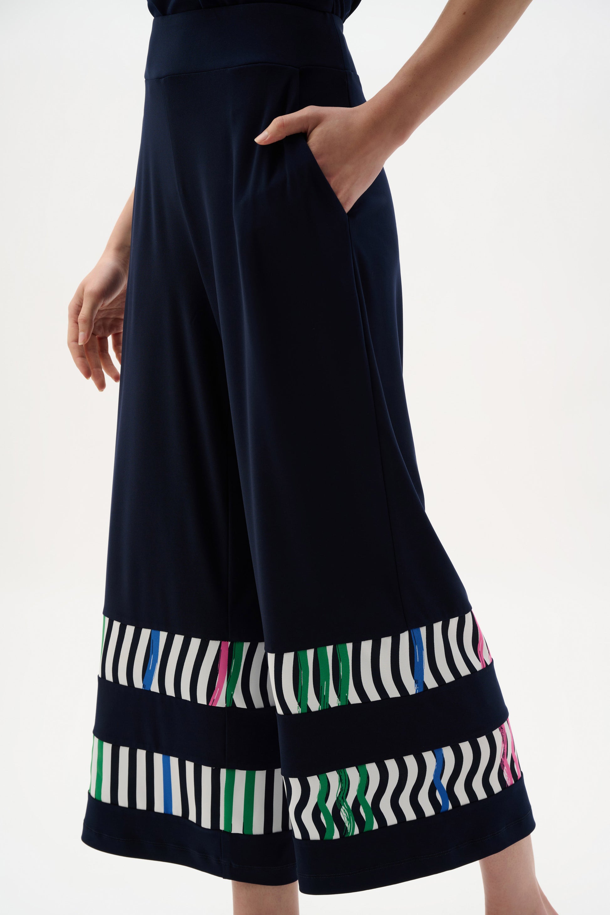 Silky Knit And Woven Stripe Print Culotte Pants. Style JR262123