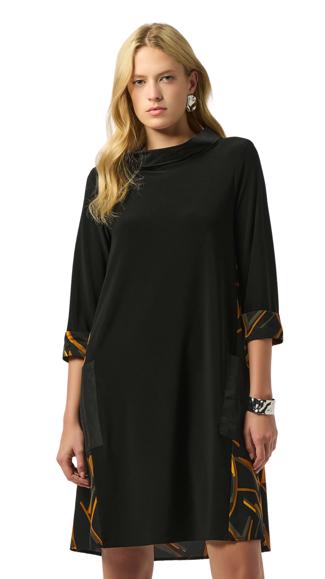 Recycled Woven Abstract Print And Silky Knit Dress. Style JR253186