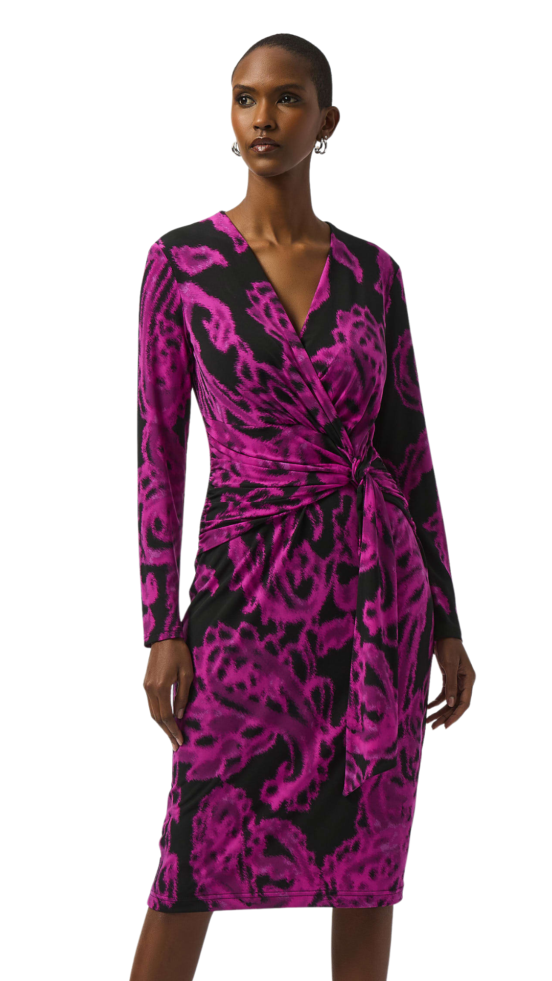 Silky Knit Paisley Print Wrap Dress. Style JR253282