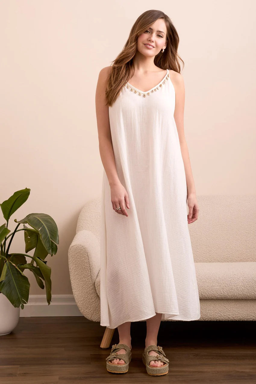 Seashell Trim Gauze Maxi Dress. Style TR587O-5010