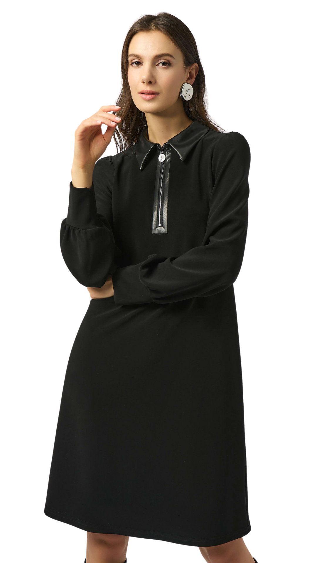 Silky Knit & Leatherette Trapeze Dress. Style JR253164