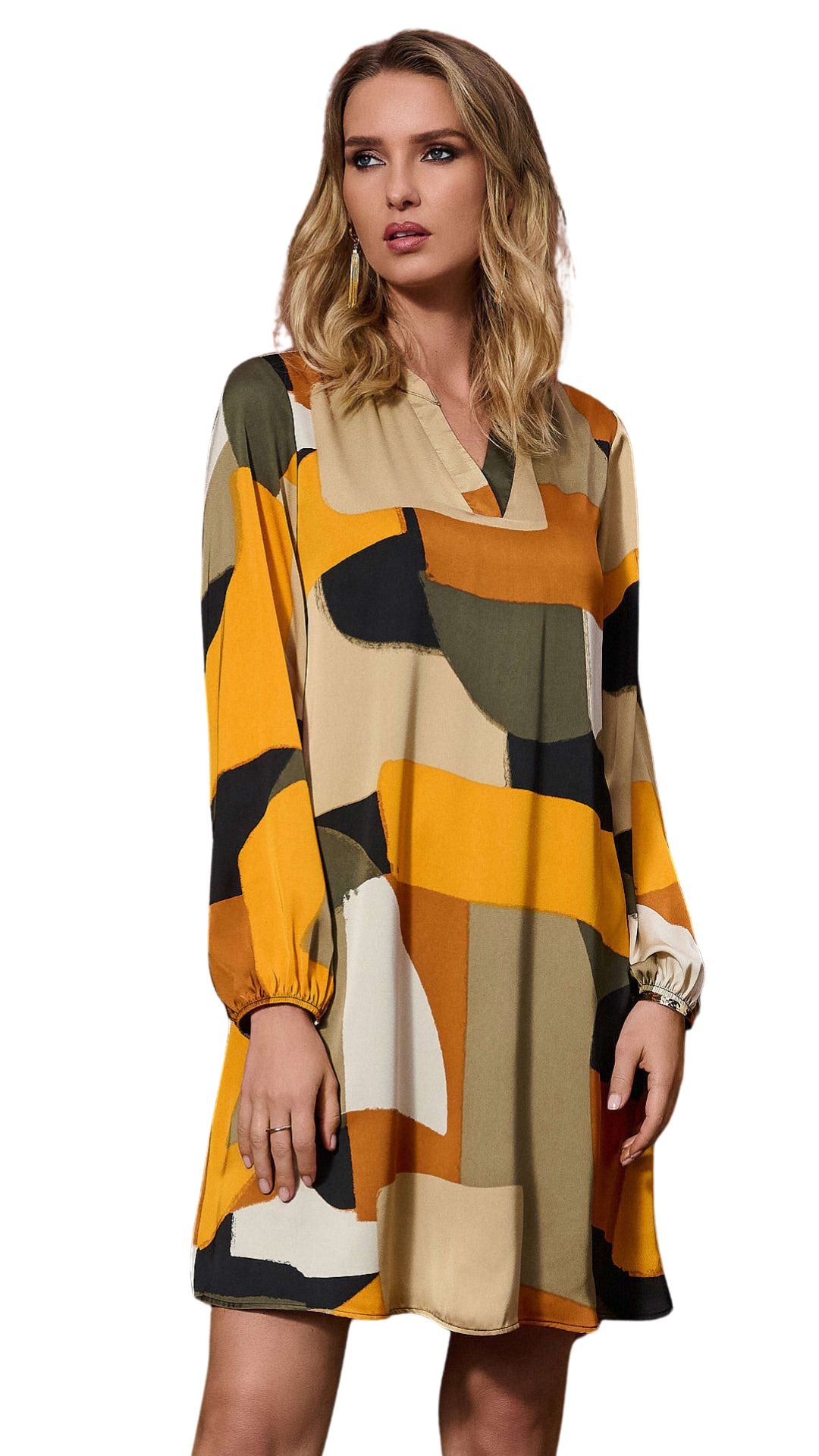 Recycled Satin Abstract Print Trapeze Dress. Style JR253218