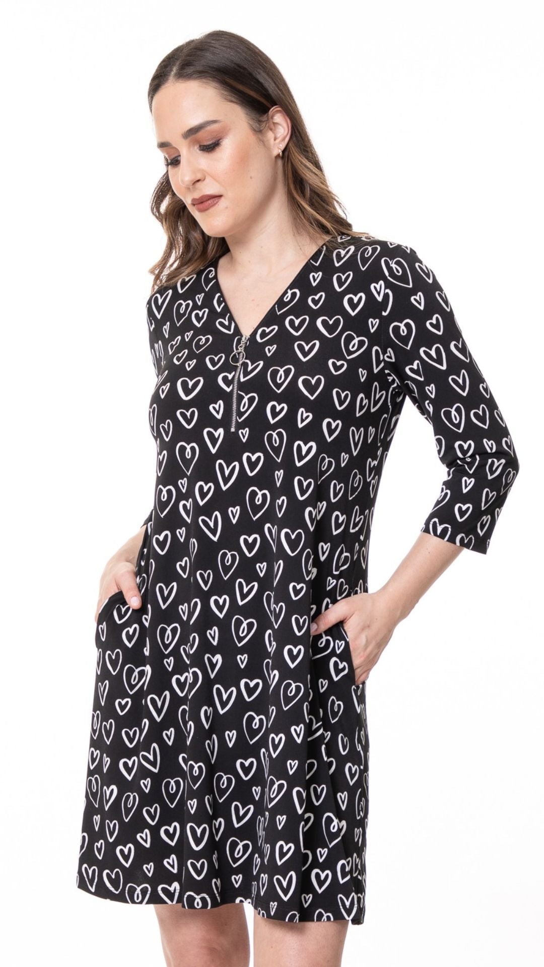- V-Neckline with 3/4 Metal Ring Zipper Front Closure