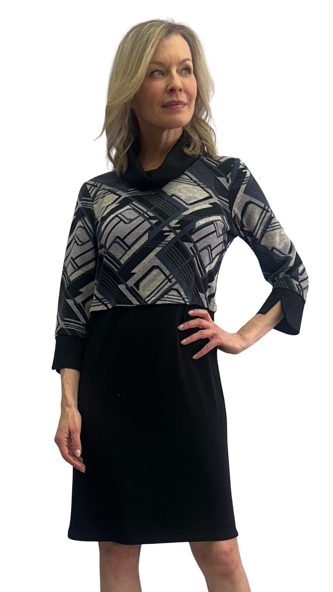 Cowl Neck Black Hem & Cuffs Dress. Style SW107218