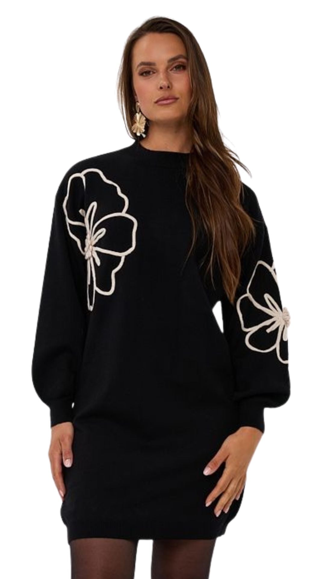 Knitted Black & White Floral Details Sweater Dress. Style ESQ02504