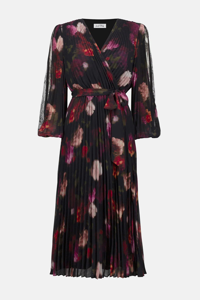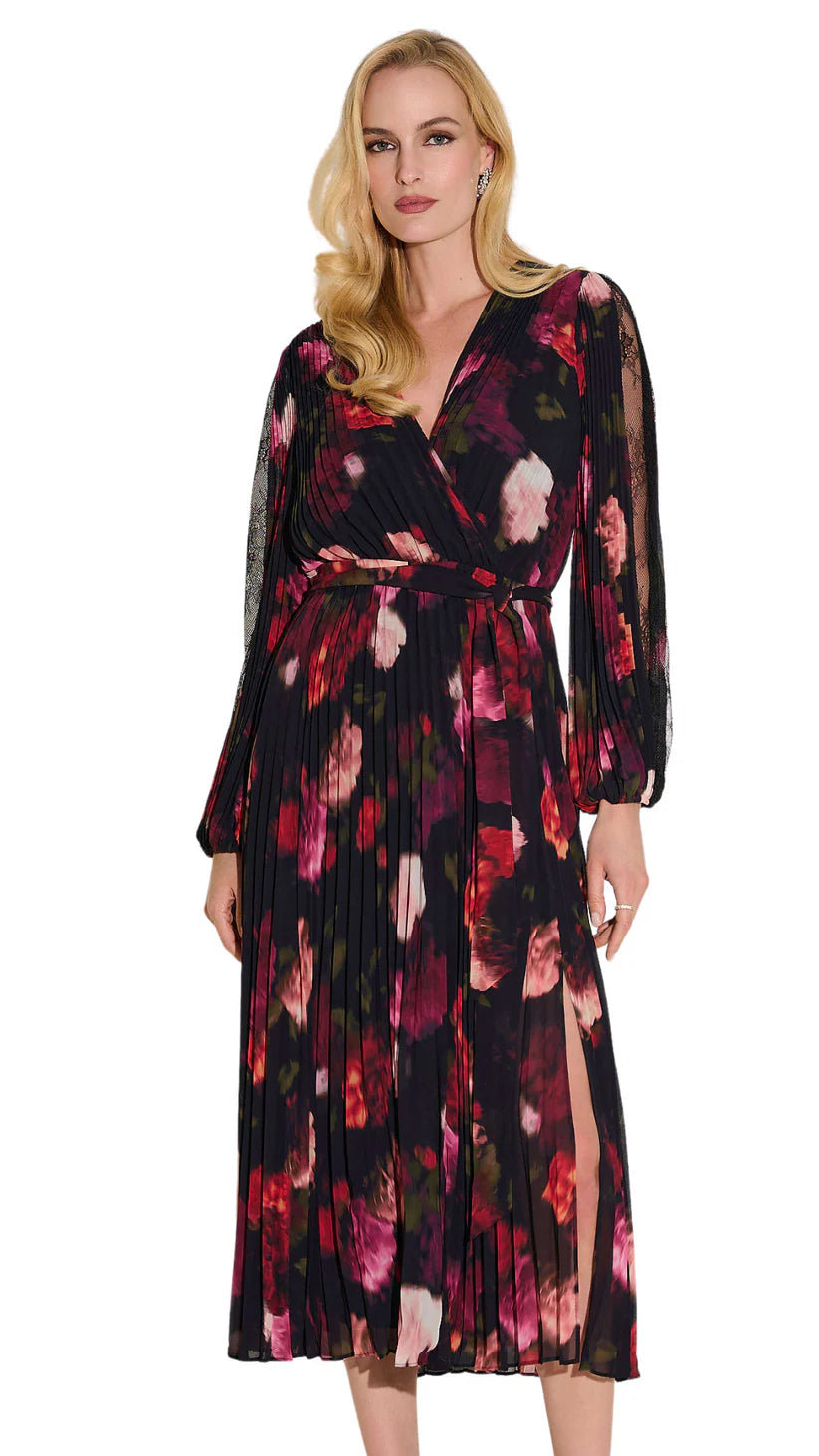 Pleated Chiffon Floral Fit & Flare Dress. Style JR253774
