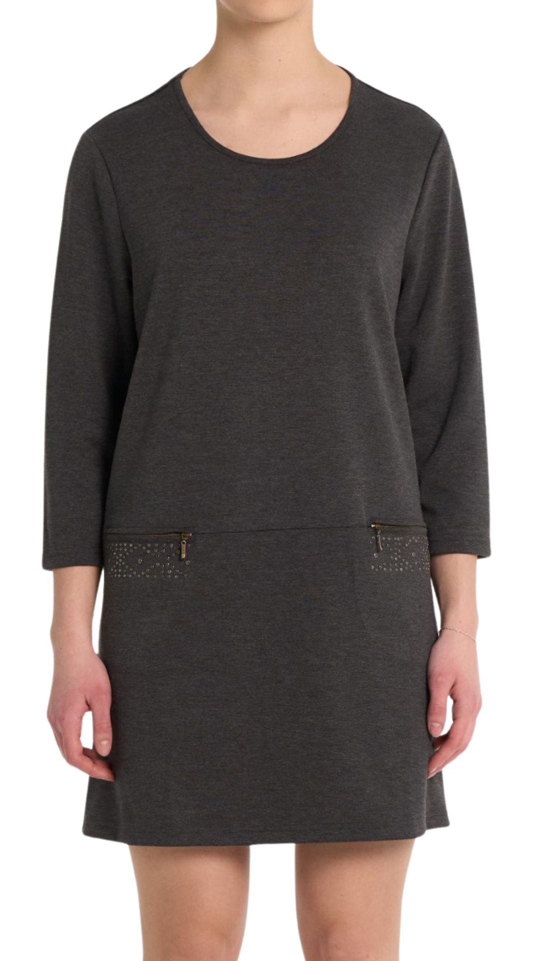 3/4 Sleeve Zipper Pockets Grey Dress . Style MIGN4046