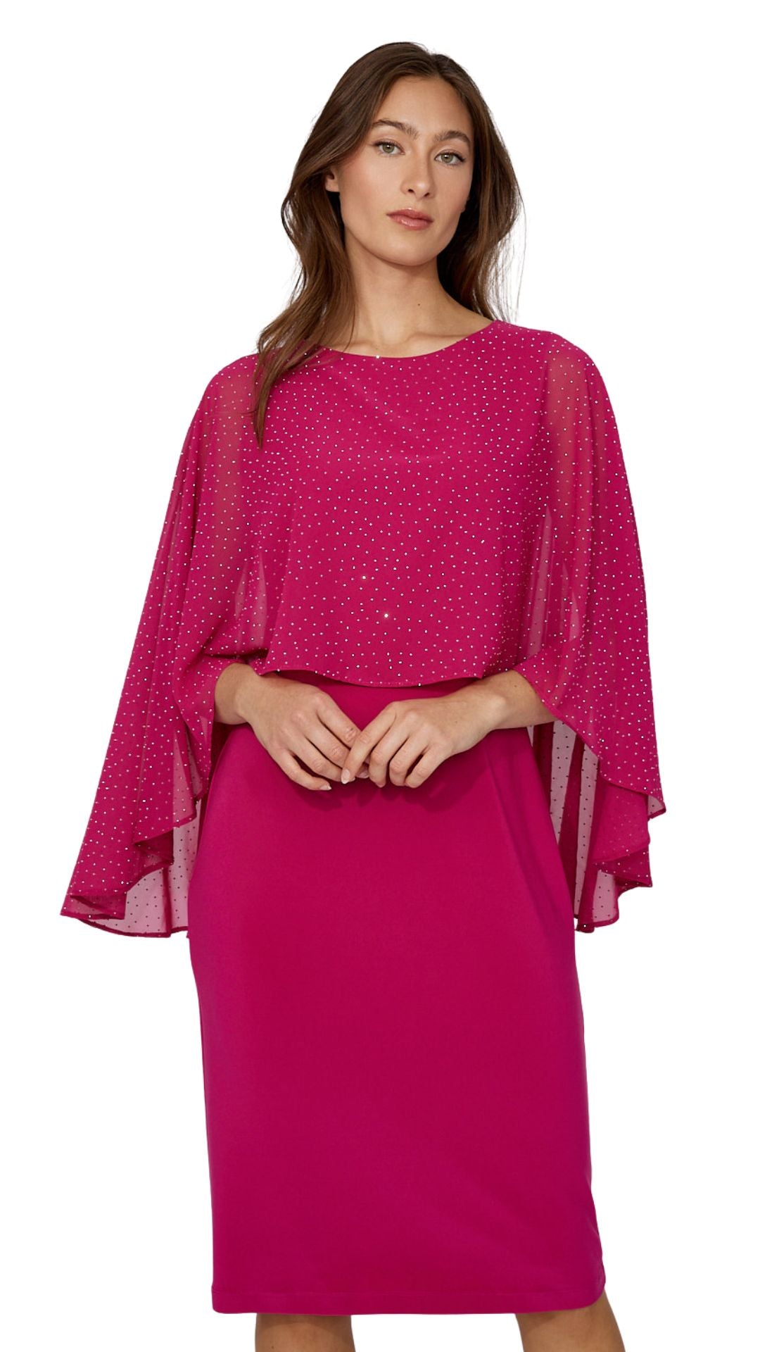 Chiffon Cape Jewel Embellishments Midi Length Dress. Style FL268195