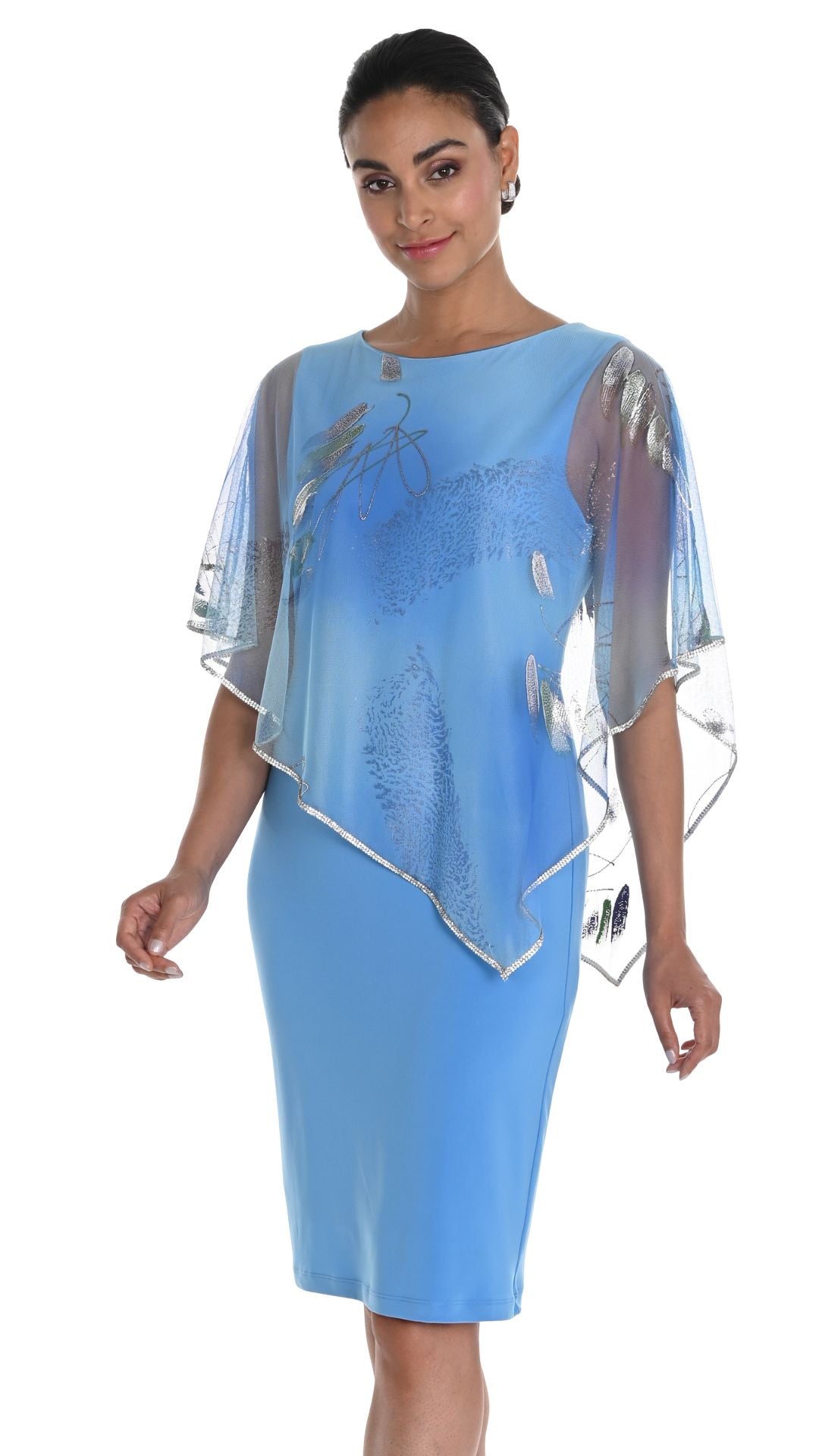 Abstract Brush Stroke Chiffon Cape Overlay Dress. Style FL258208