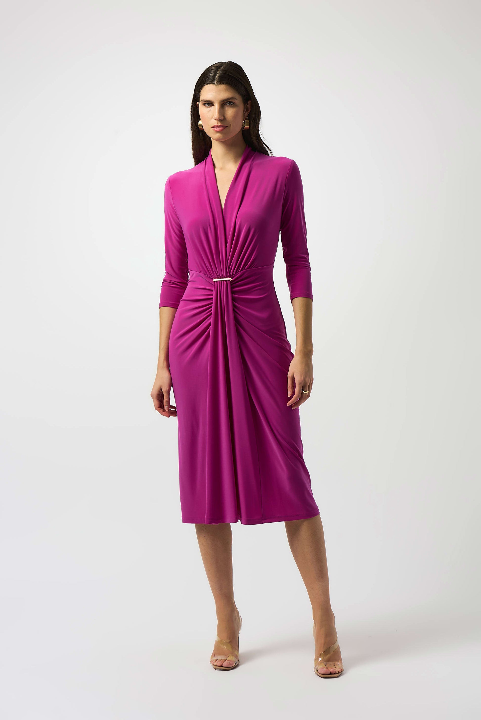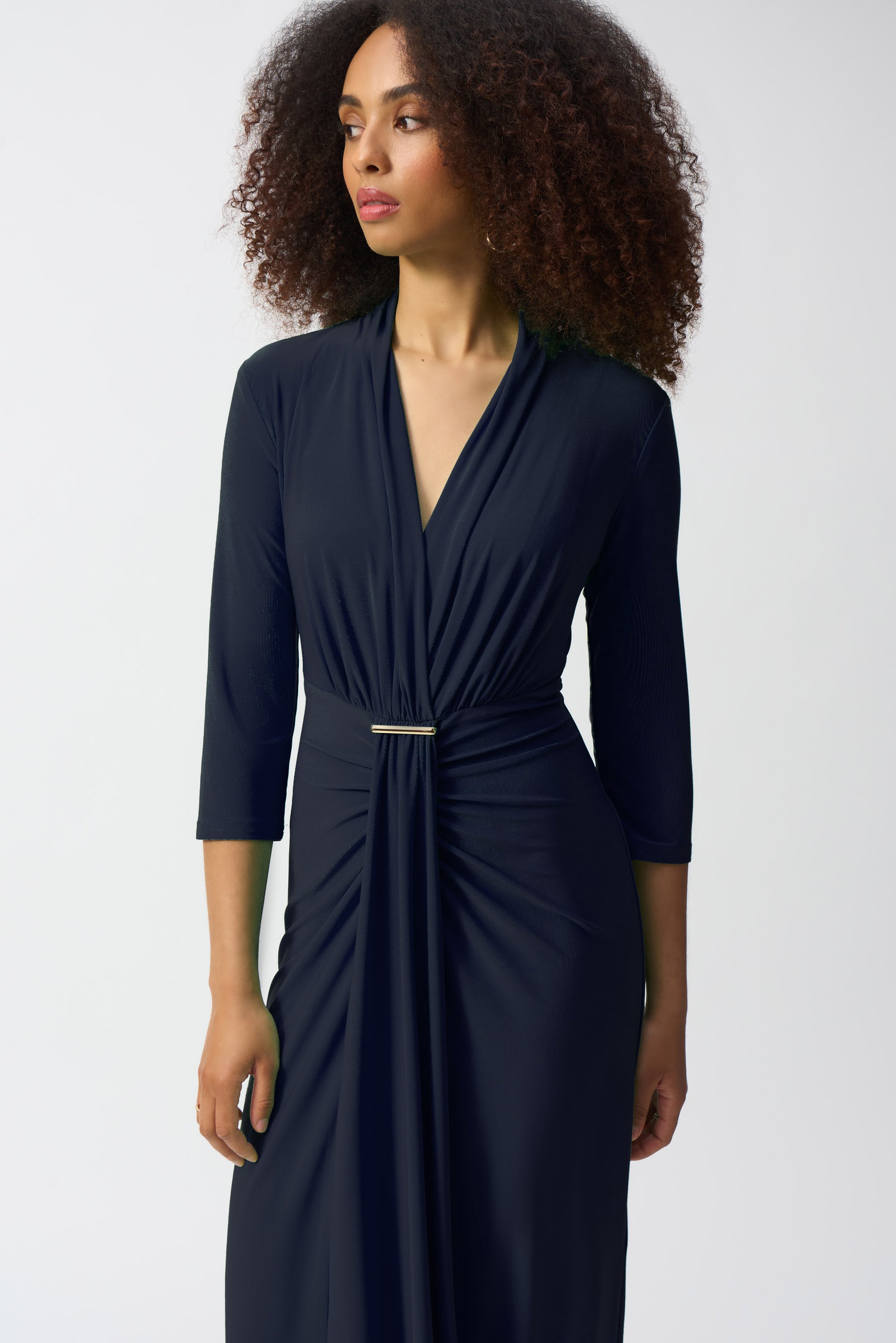 Silky Knit Draped Wrap Dress. Style JR251275