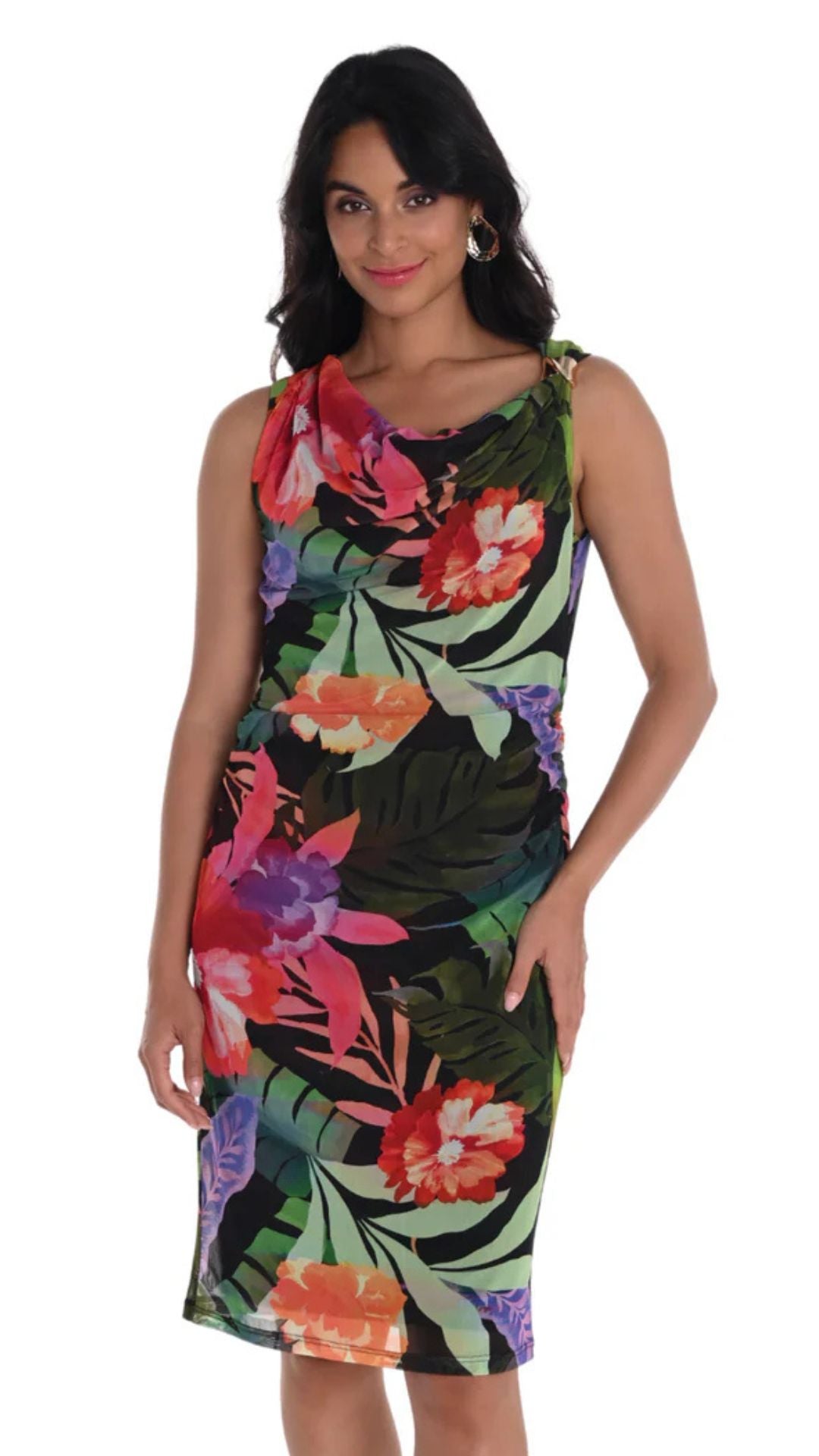 Floral Pattern Mesh Sleeveless Dress. Style FL251349
