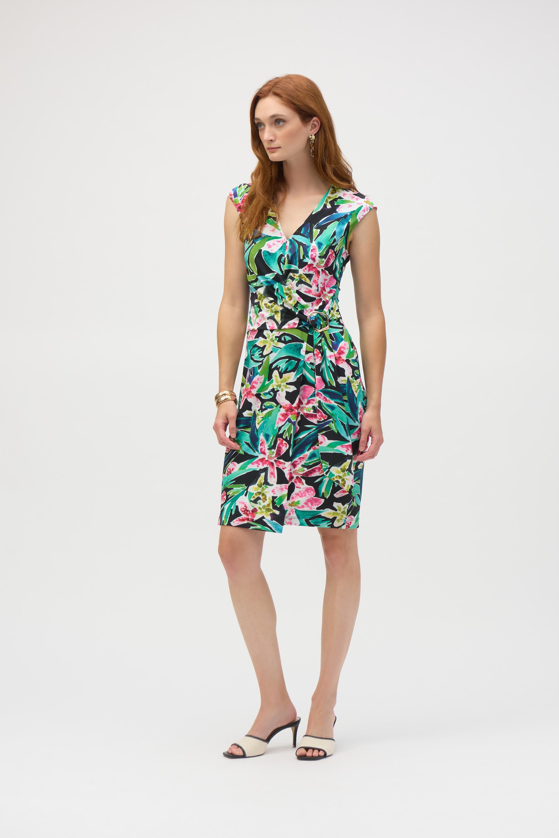 Silky Knit Tropical Print Sheath Dress. Style JR252079