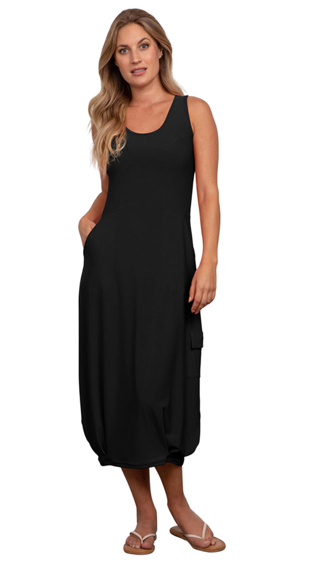 Pleat Hem Tank Midi Dress. Style SI28131BLK