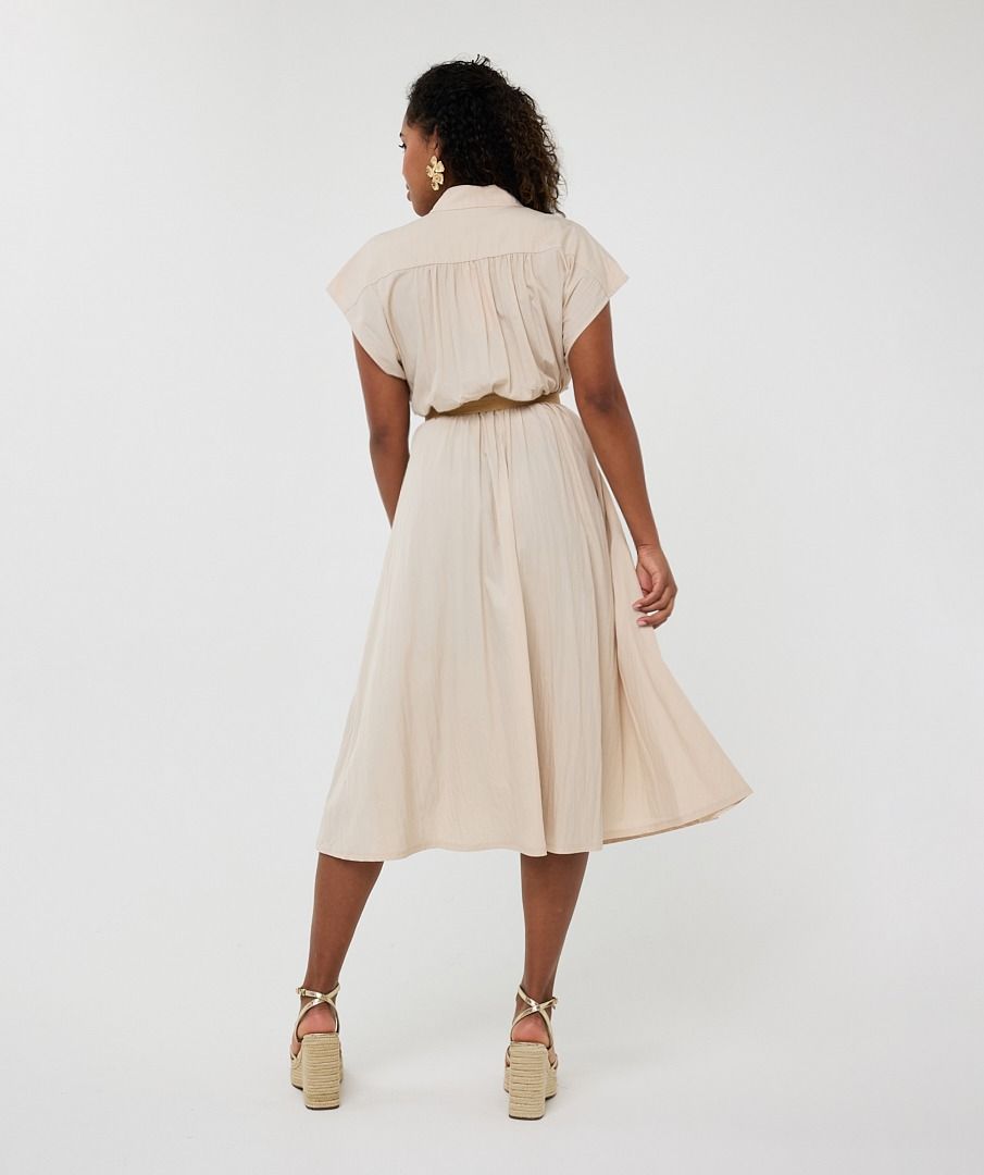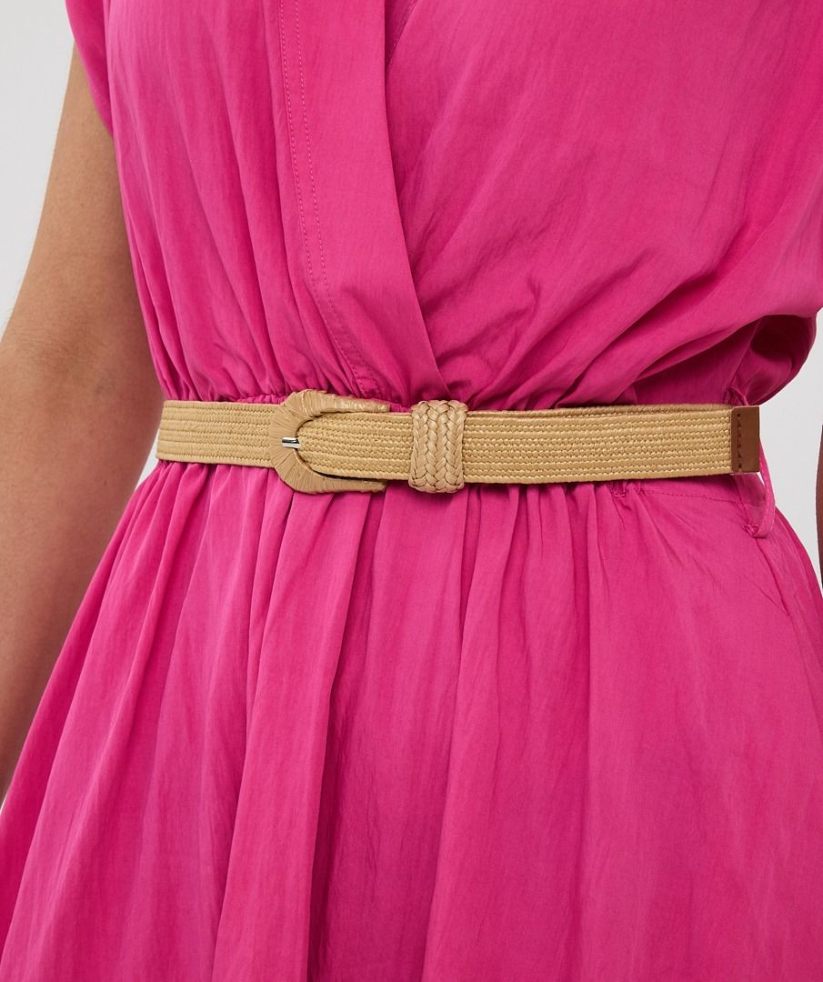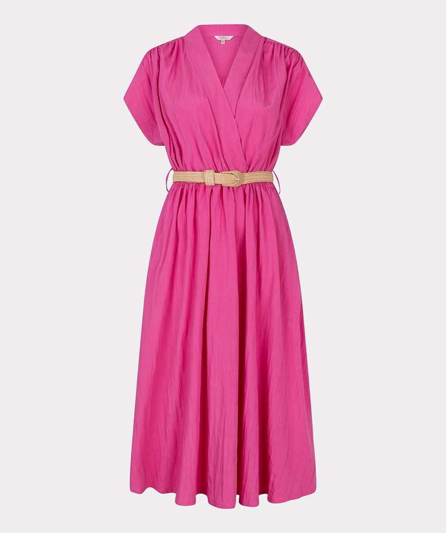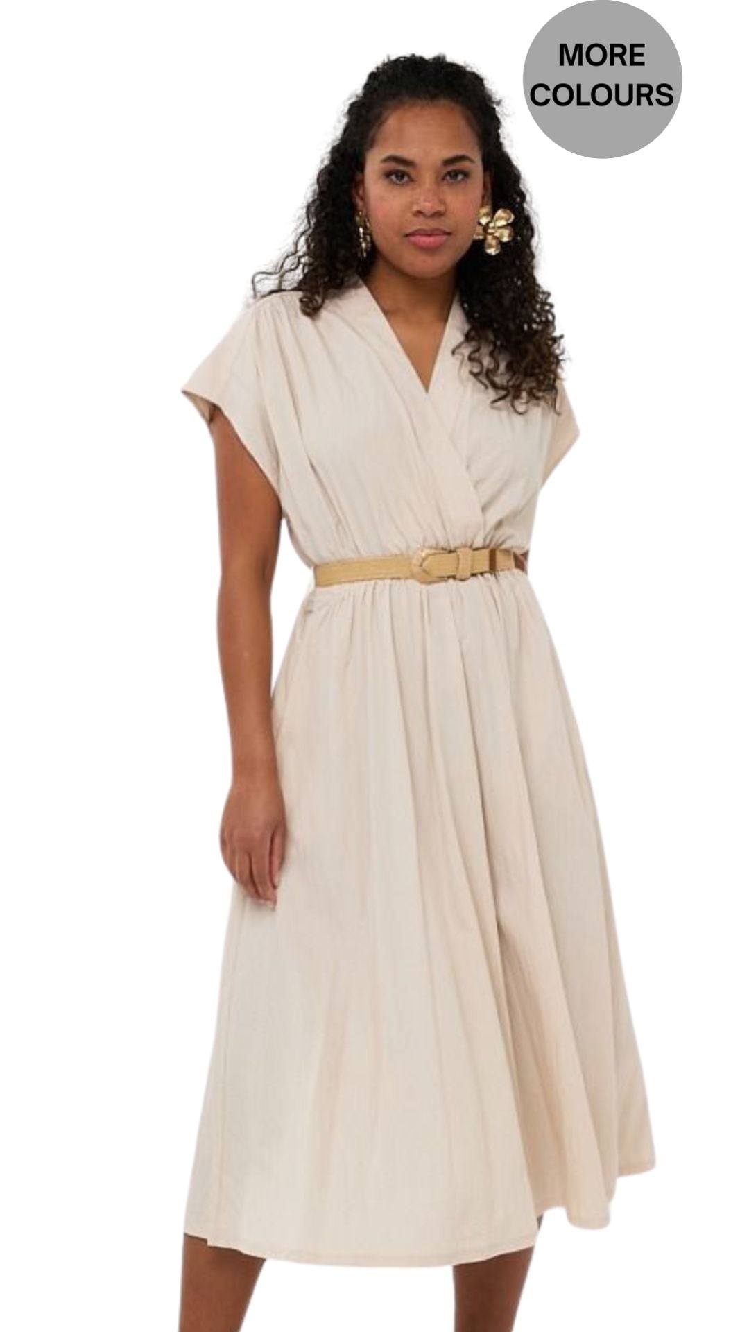 Crossover Elastic Waist Belted Midi Dress. Style ESQHS2505203