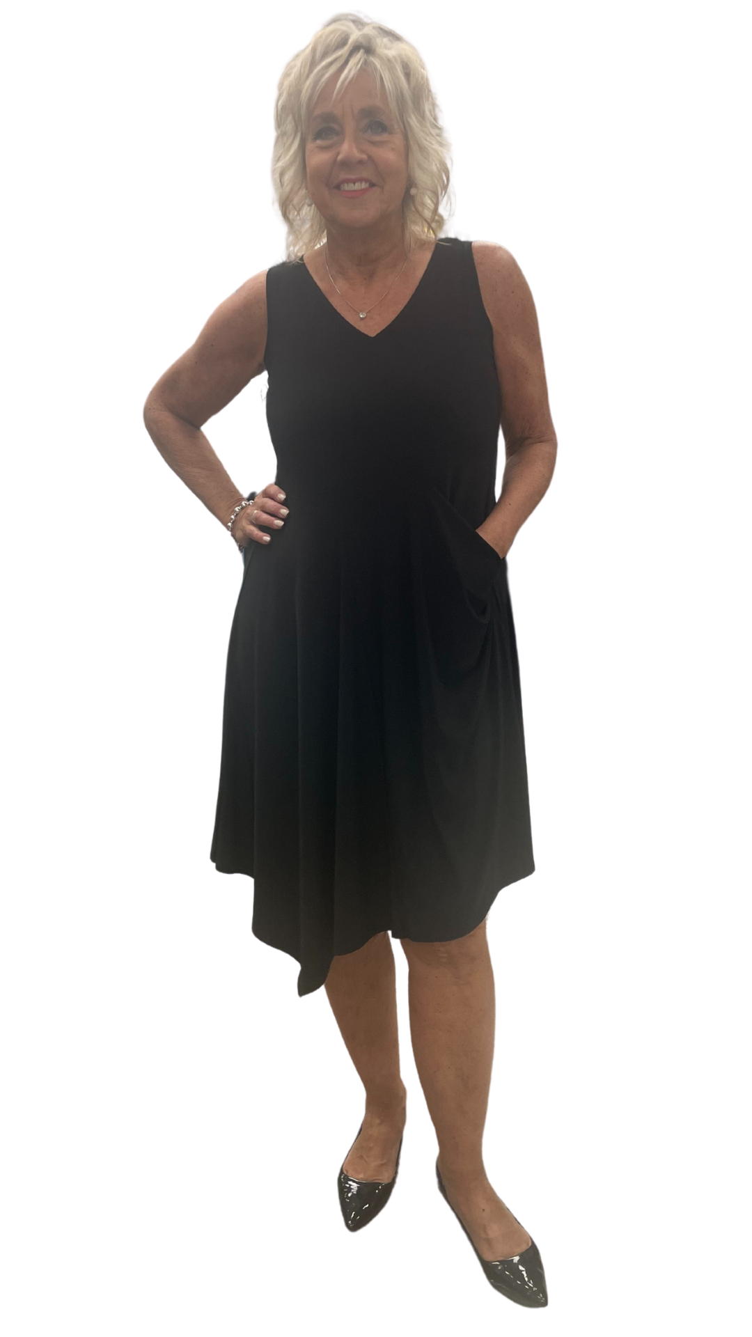 Side Slant Pocket Sleeveless Dress. Style SI2888BLK