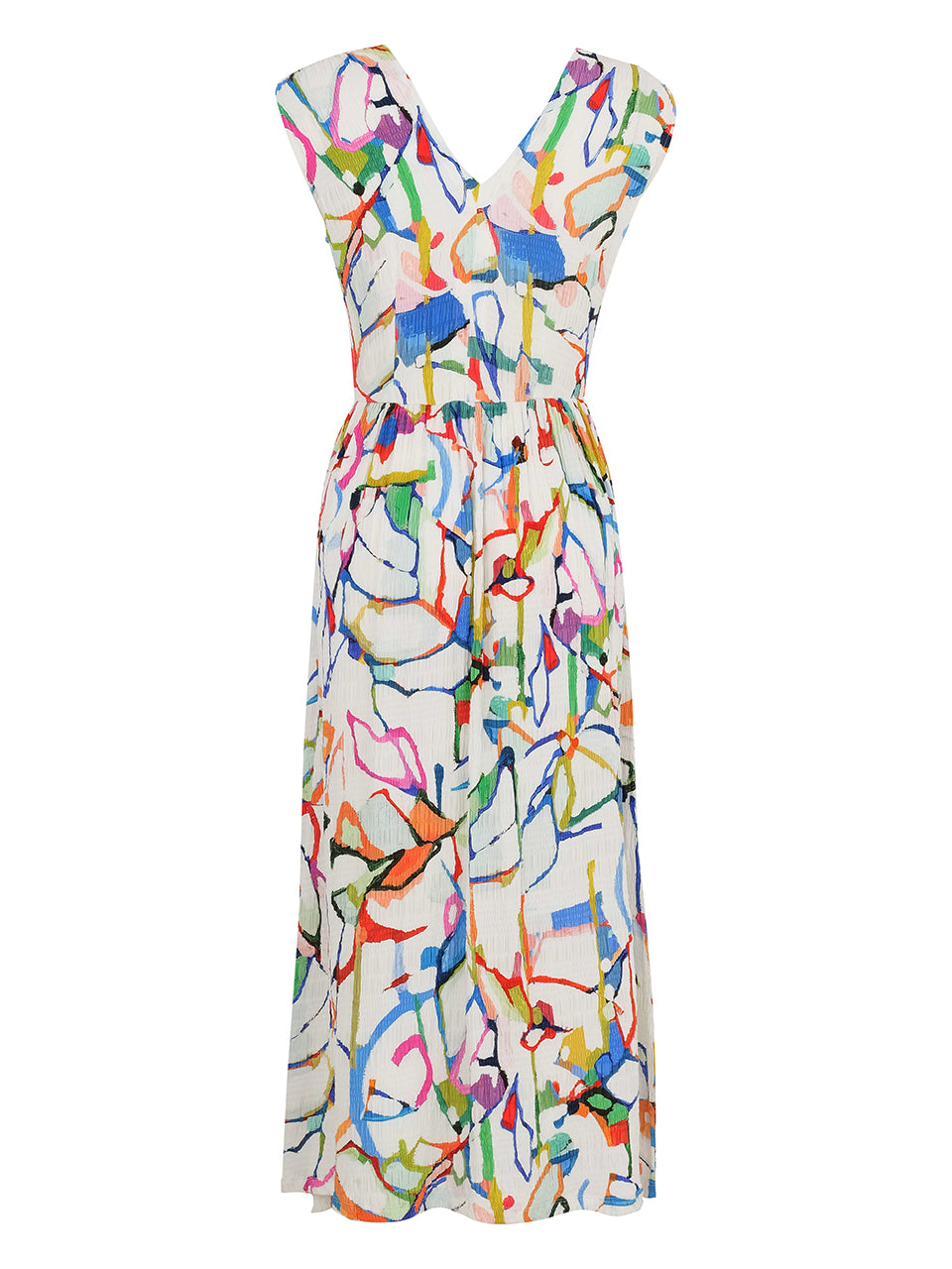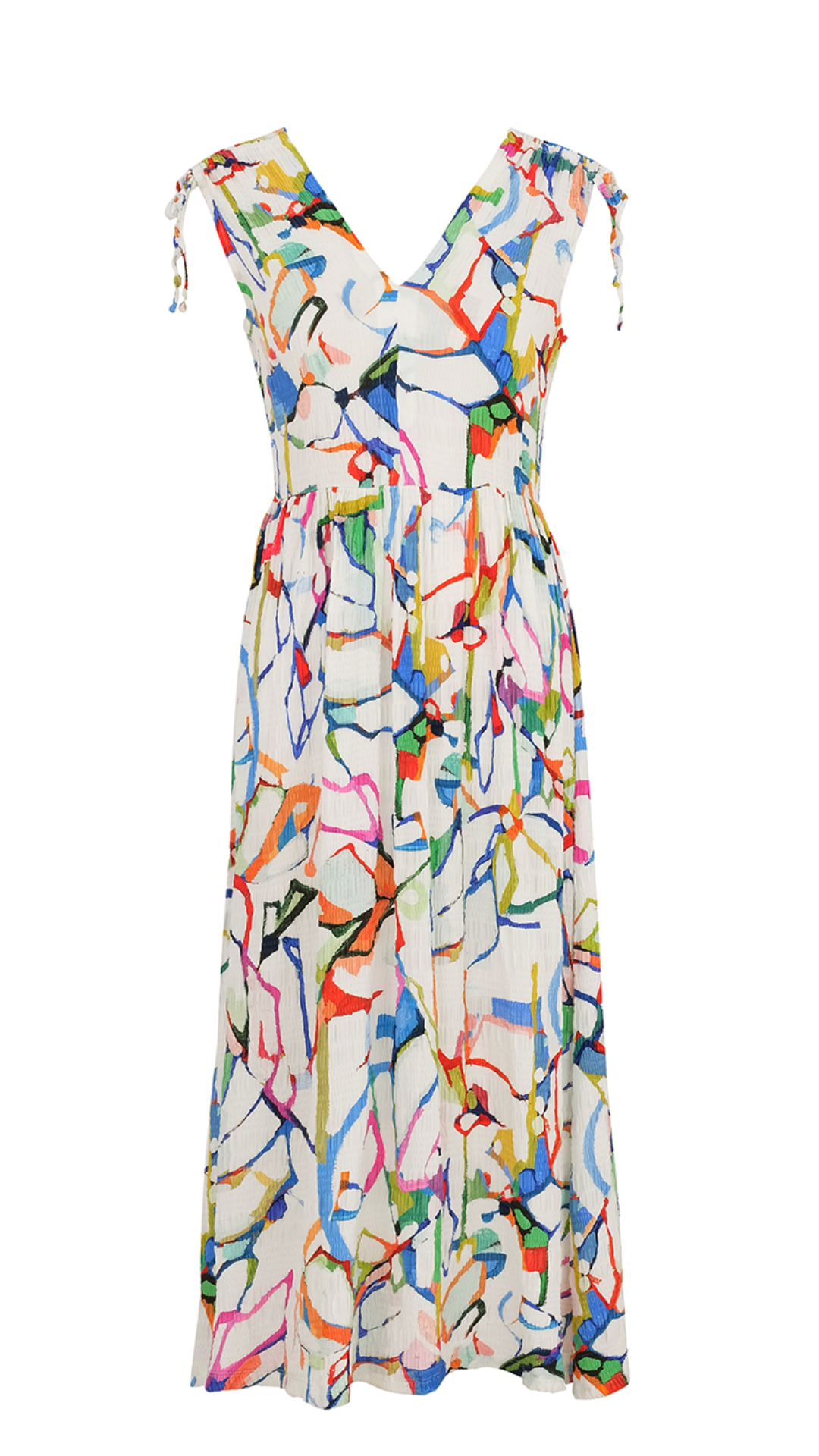 "Fighting The Wind" Artist Print Sleeveless Shoulder Gather Dress. Style DOLC25646