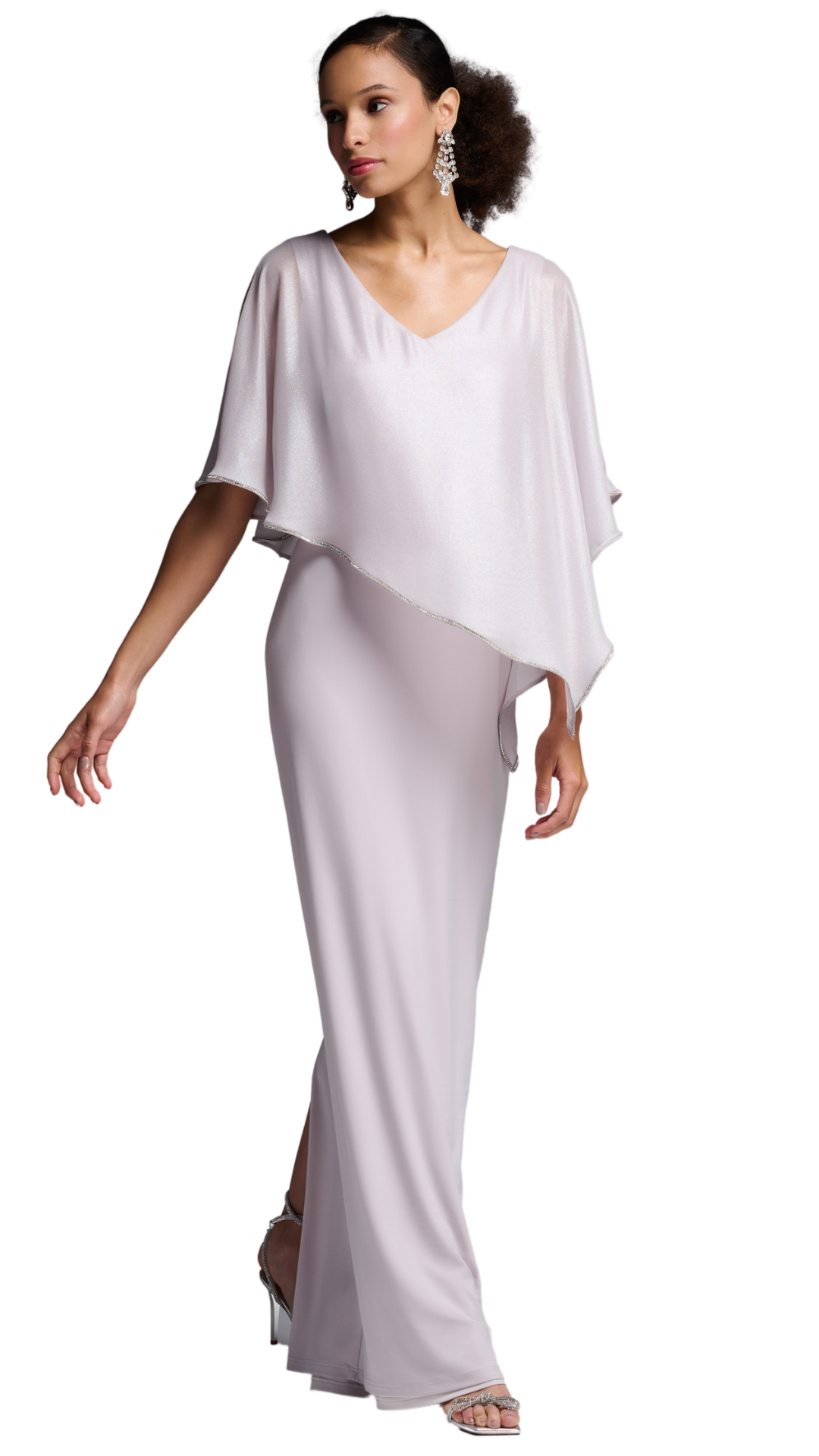 Foiled Cape Overlay Sheath Gown. Style JR231762