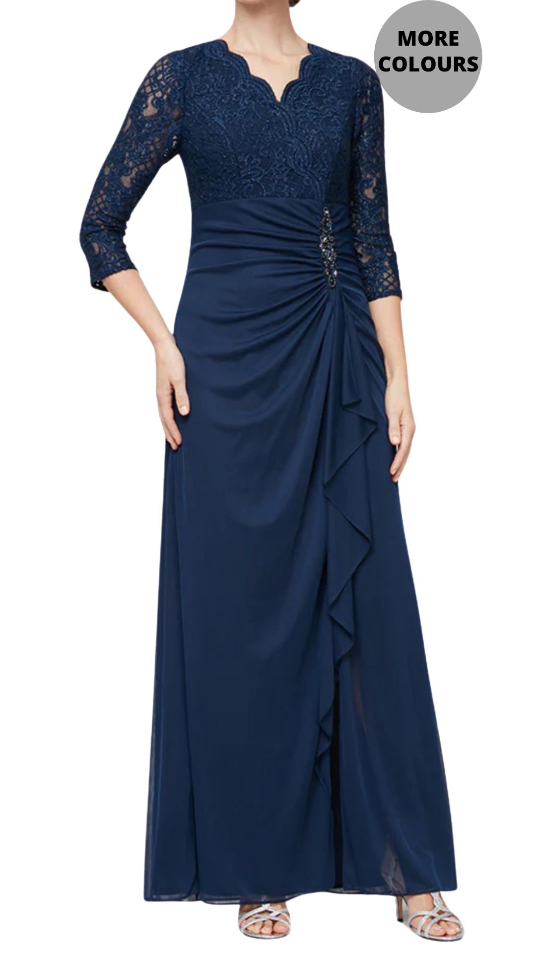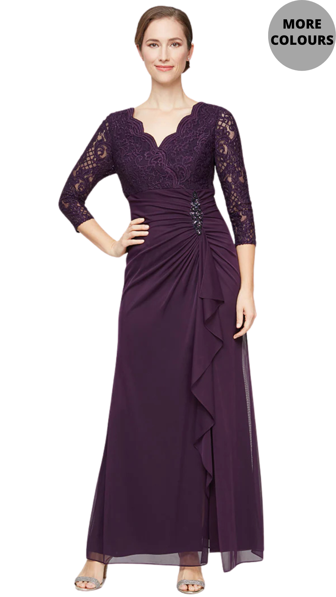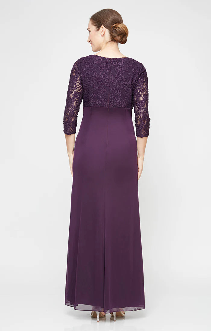 Empire Waist Lace & Mesh Dress with Surplice Neckline. Style ALE81122469