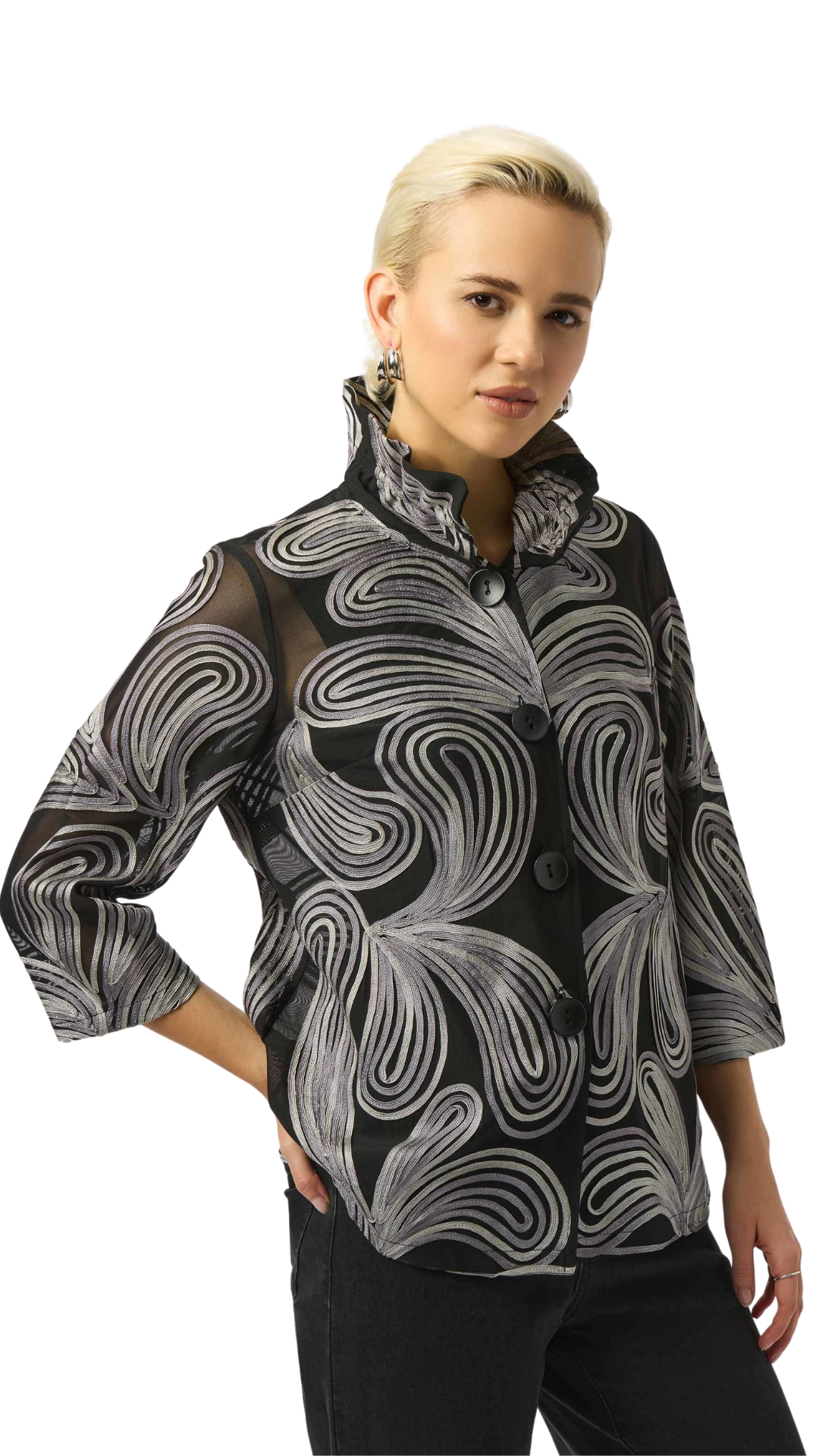 Embroidered Mesh Straight Jacket. Style JR253949