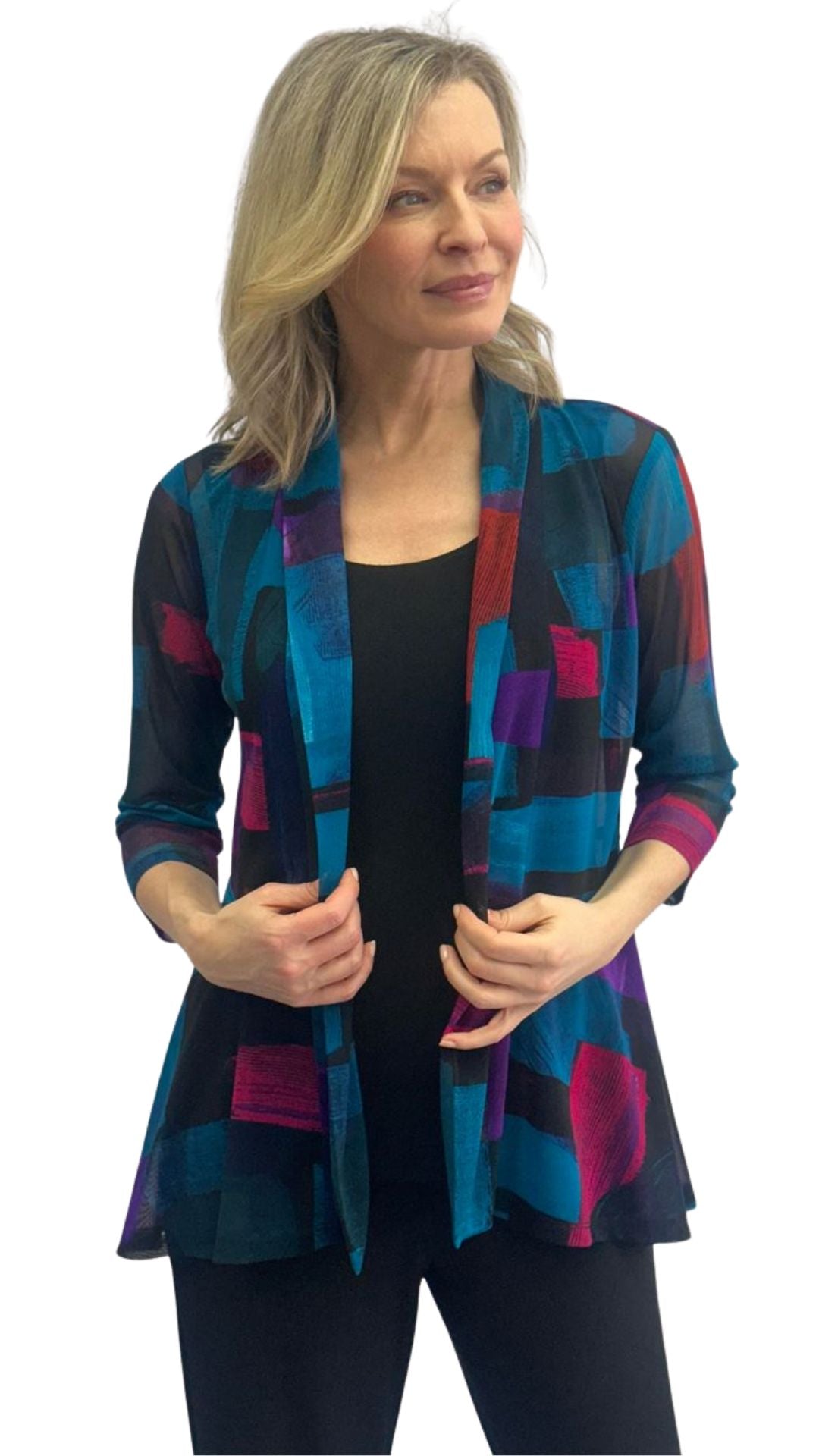 Mesh Open Front Abstract Print Jacket. Style SW101201