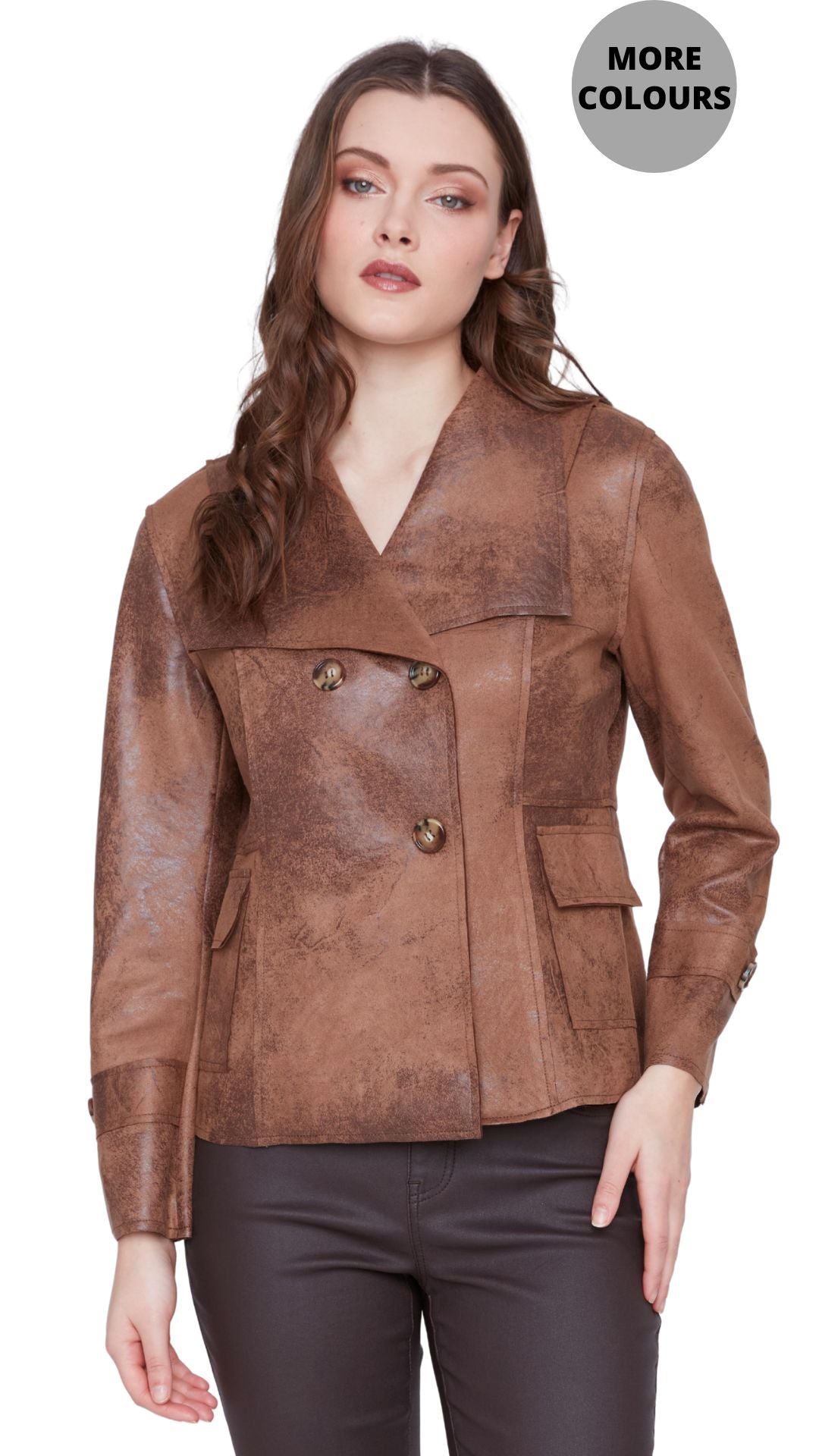 Faux Leather Tailored Lapel Collar Jacket. Style CYC2522057
