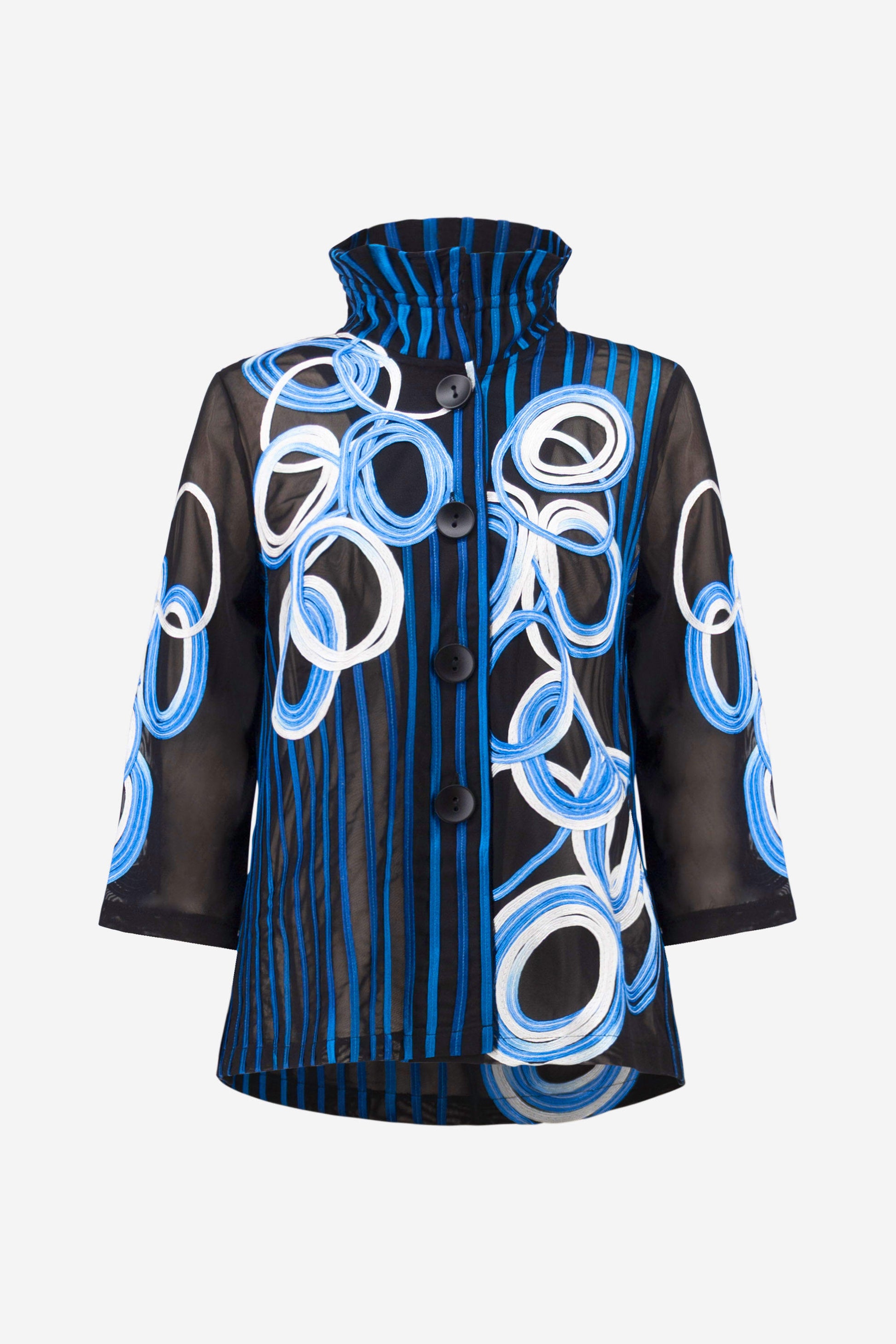 Satin & Mesh Bell Sleeve Circle Applique Jacket. Style JR261904
