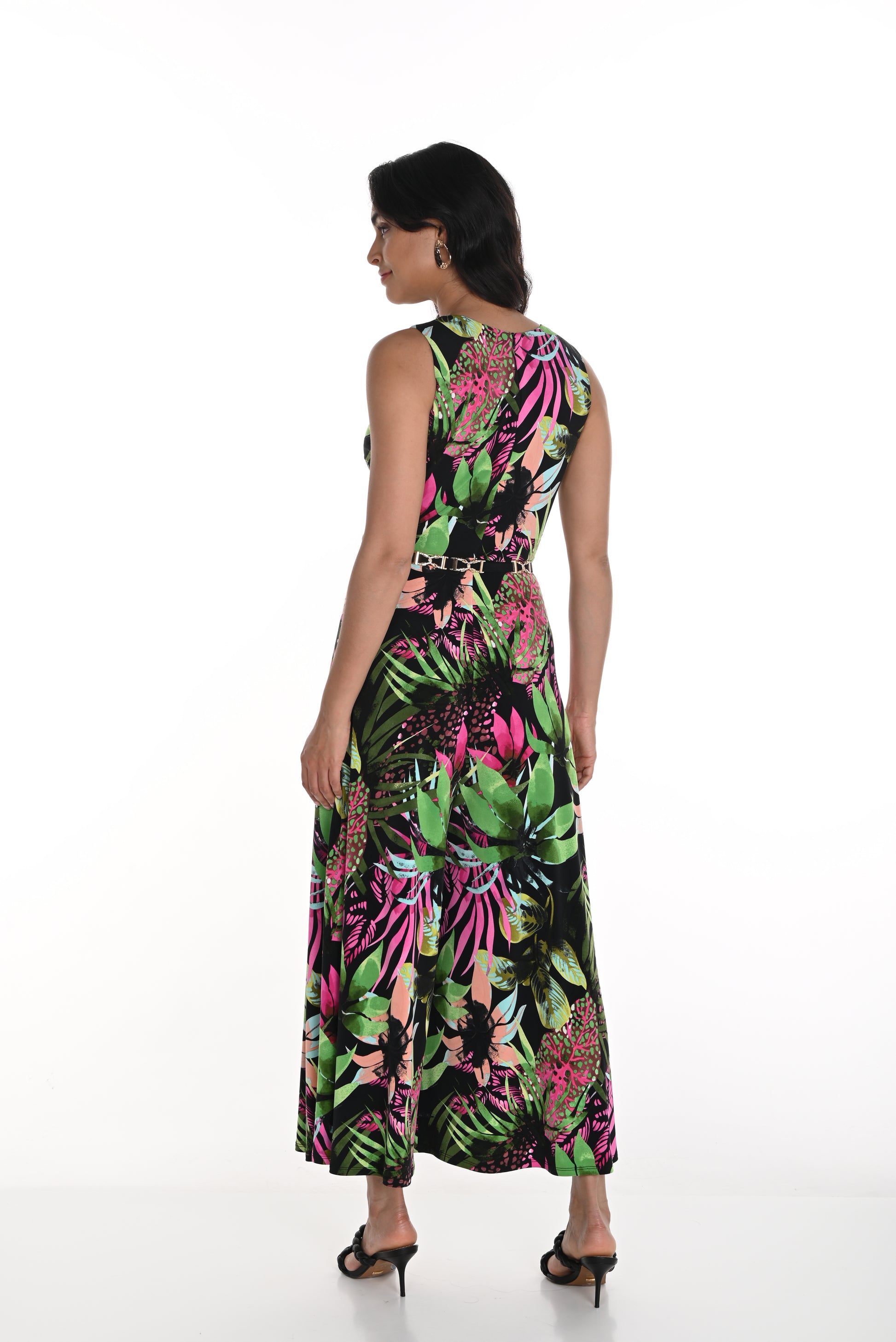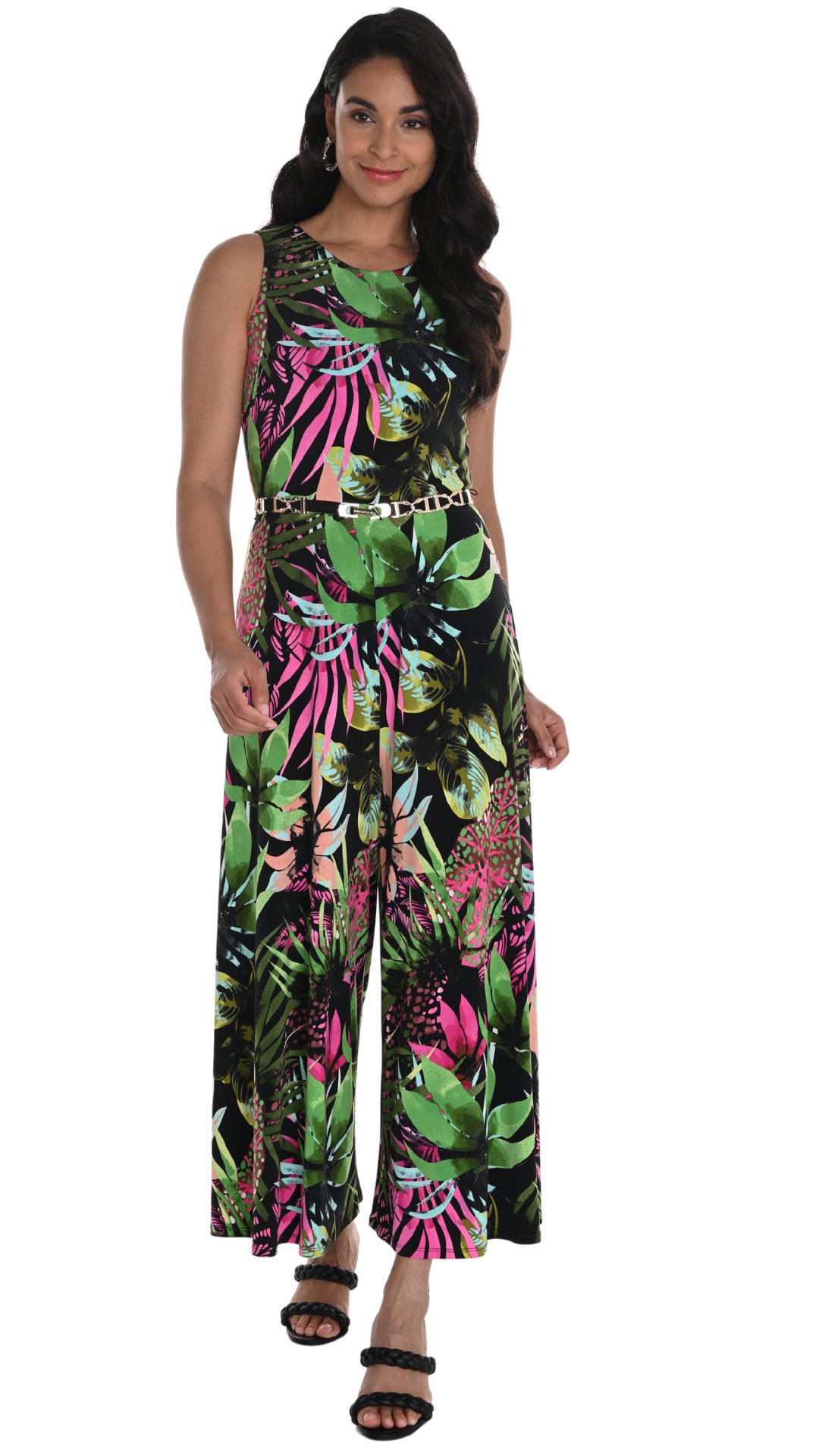 Tropical Print Godl Belt Jumpsuit. Style FL256123