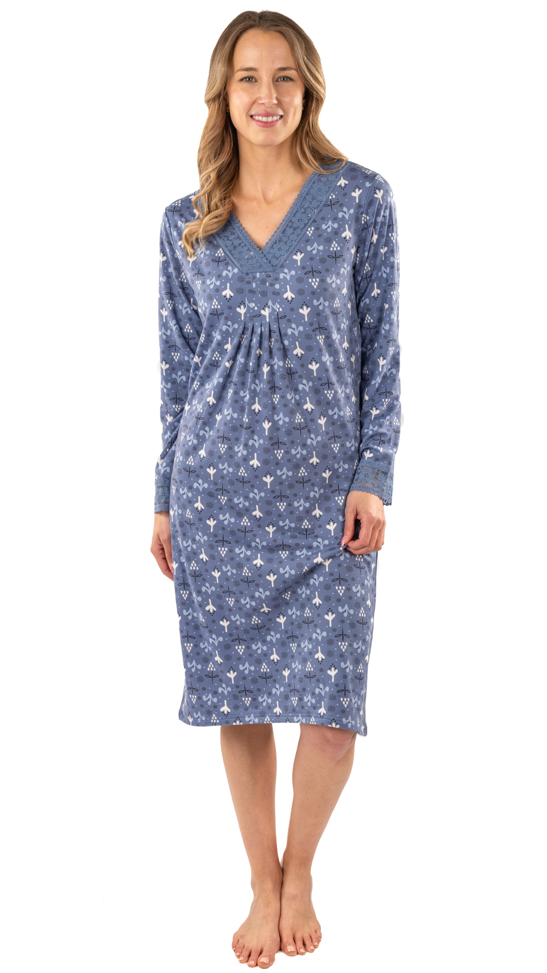 Blue Floral Classic Nightgown. Style PL106-2BLU
