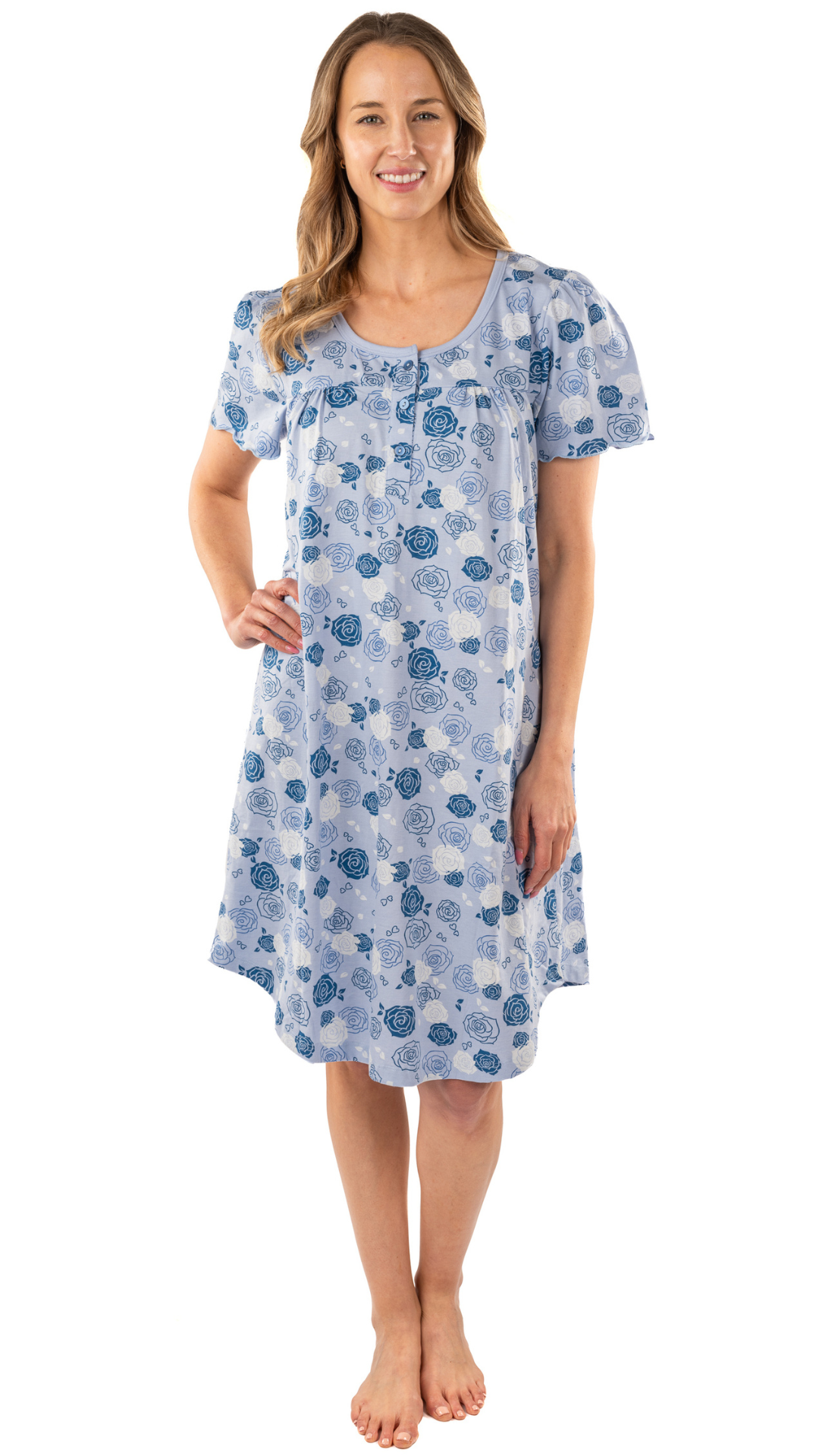 Rose Print Mid Length Nightgown. Style PL110-2BLU