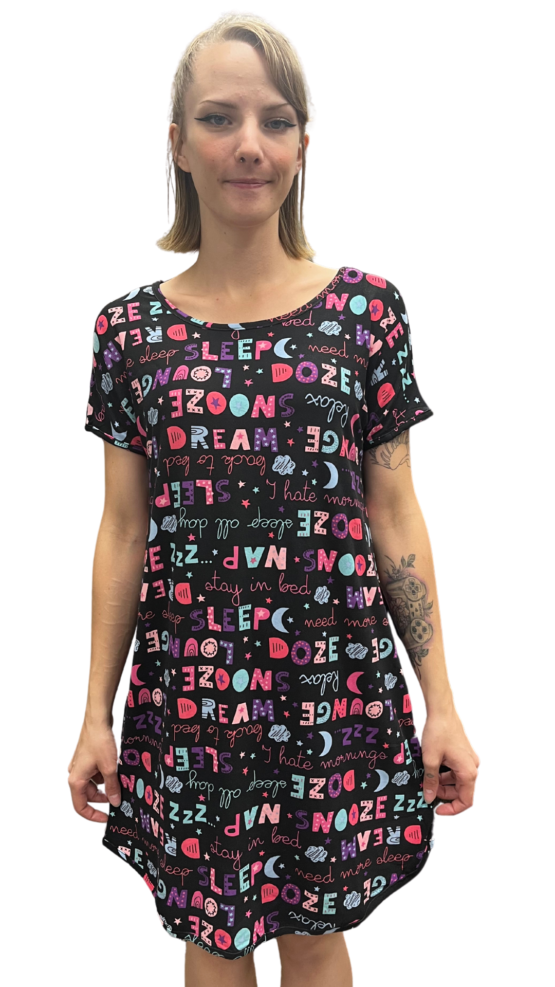 Sleep, Nap, Dream, Snooze Print Night Shirt. Style COTYM-NSDREAM