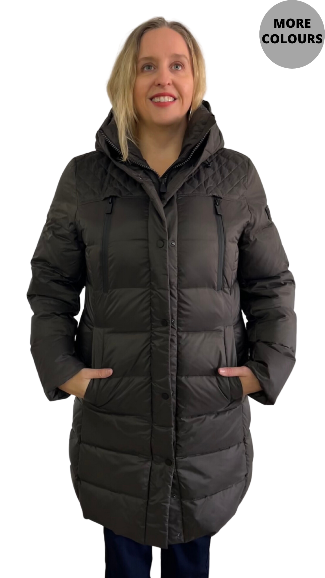 Quilted Yoke Puffer with Four Snap Pockets. Style JUN2356