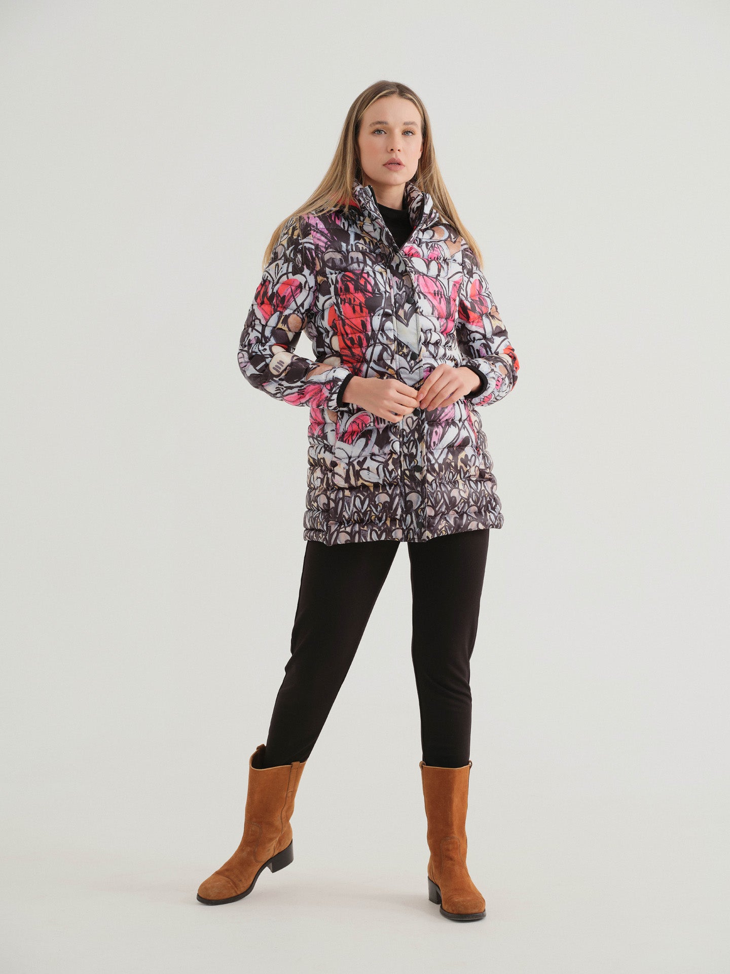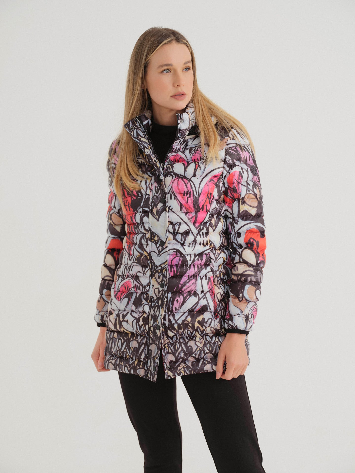 "Watermelon Heart" Artist Print Mid Length Puffer Outerwear. Style DOLC74850