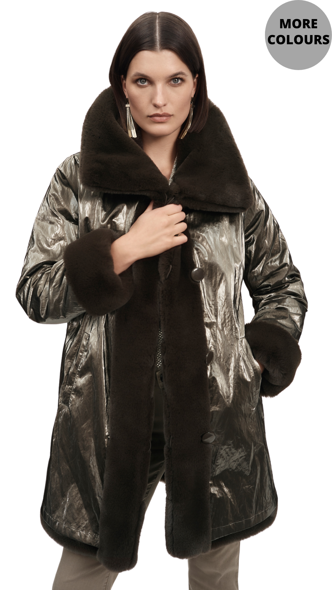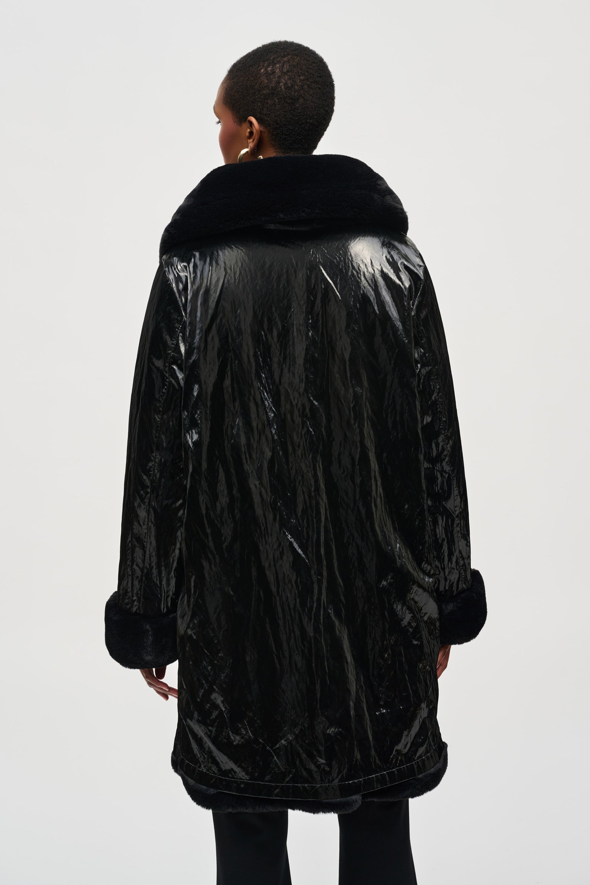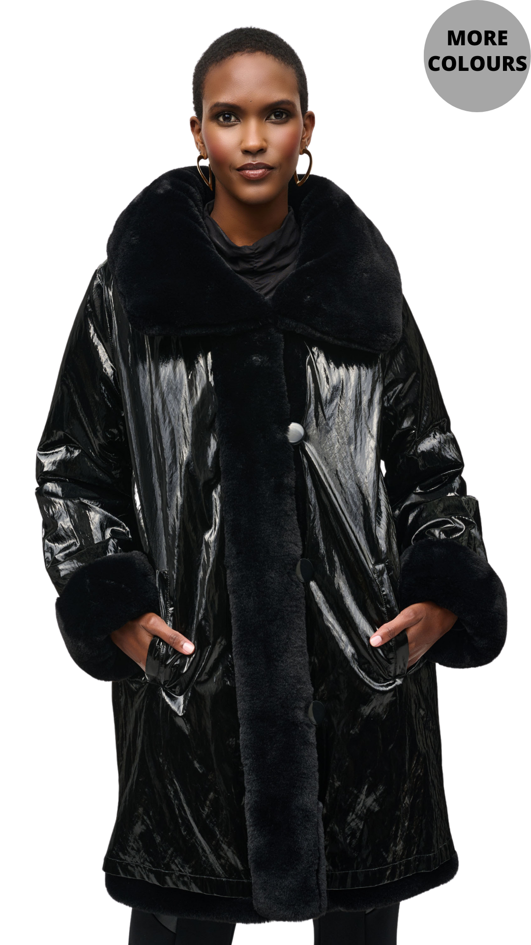 - One Side Shiny with Faux Fur Trim, One Side Faux Fur