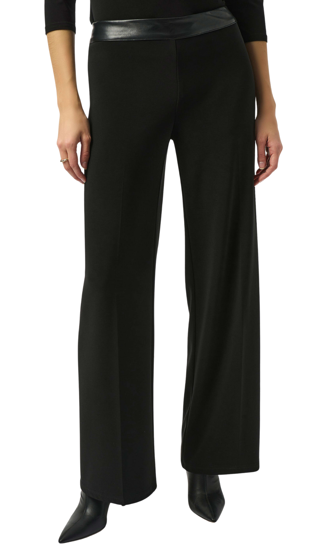 Silky Knit & Leatherette Wide-Leg Pants. Style JR253114