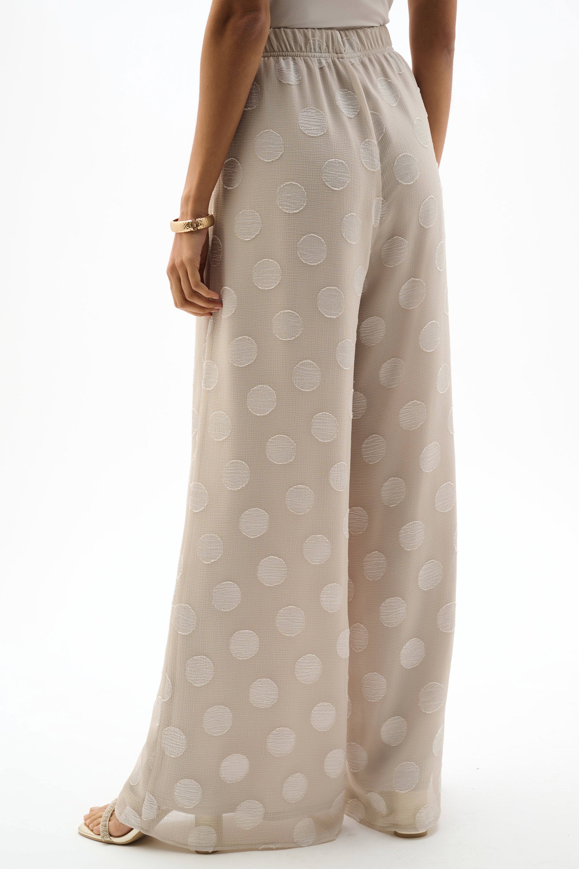 Chiffon Jacquard Dot Print Wide Leg Pants. Style JR262259