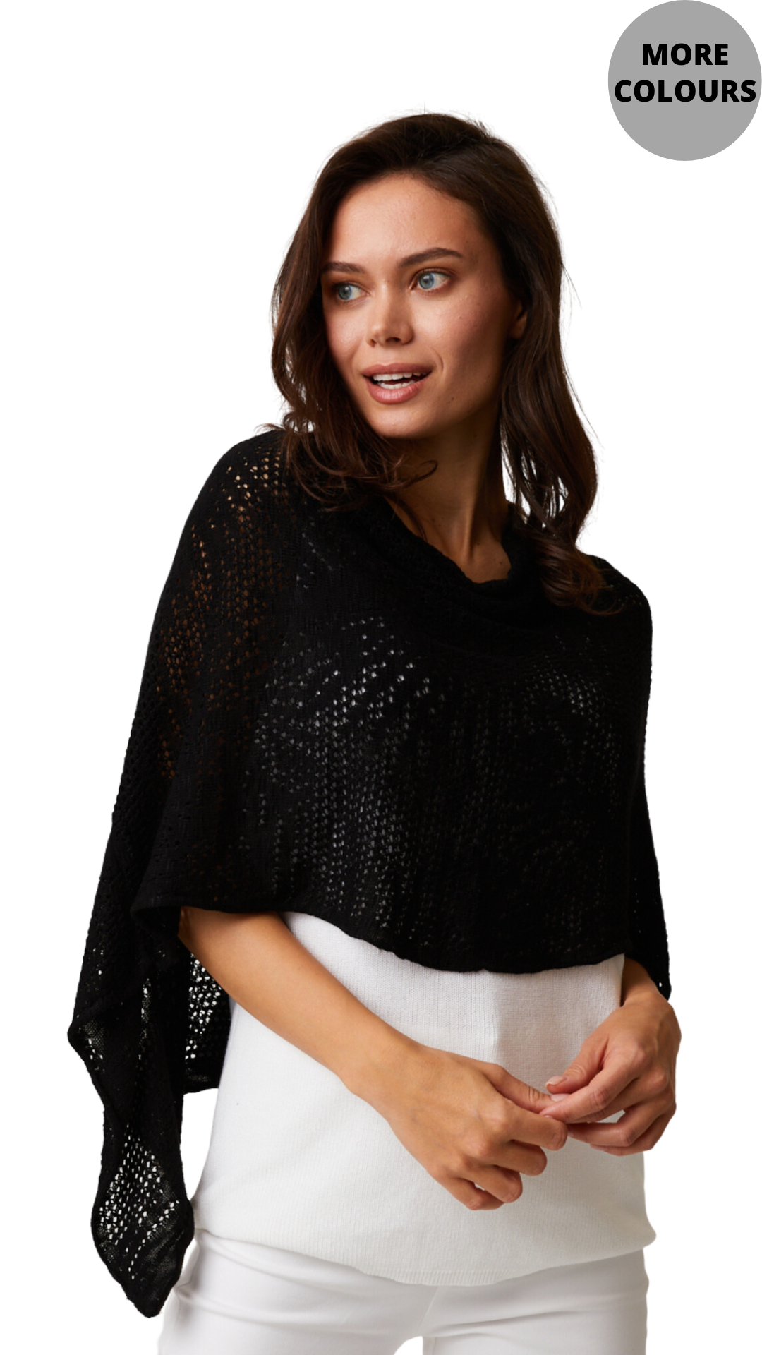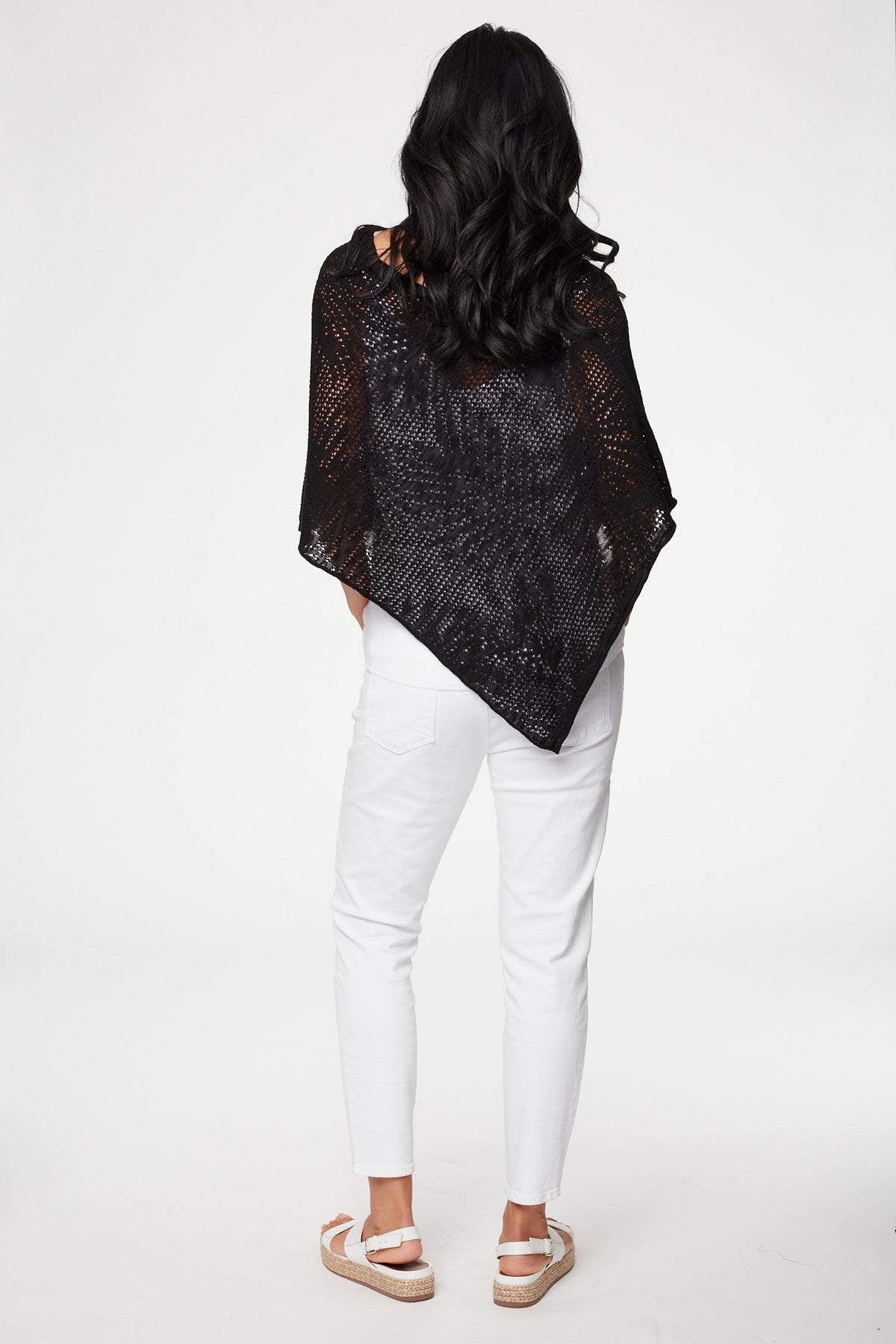 Palm Leaf Knit Poncho in Black or White. Style PH22258