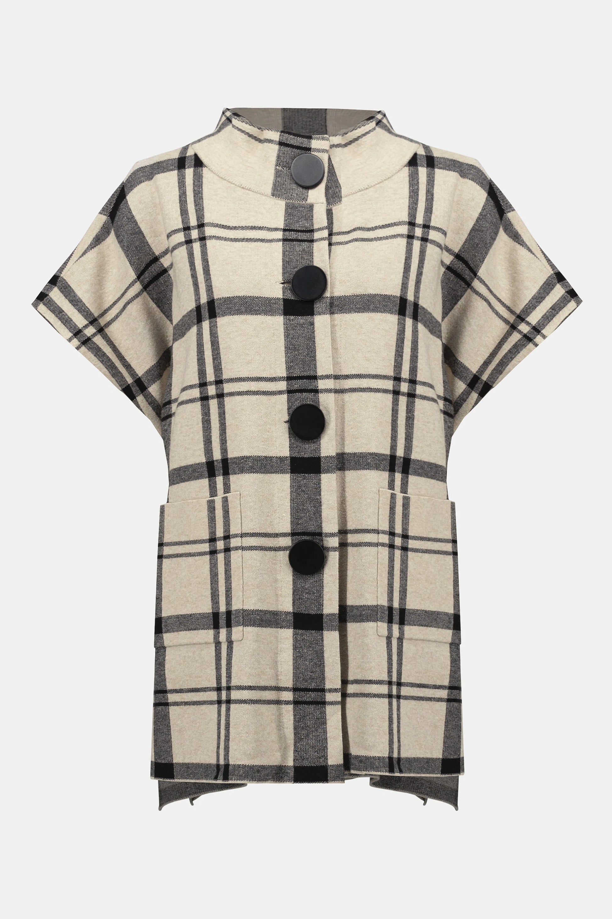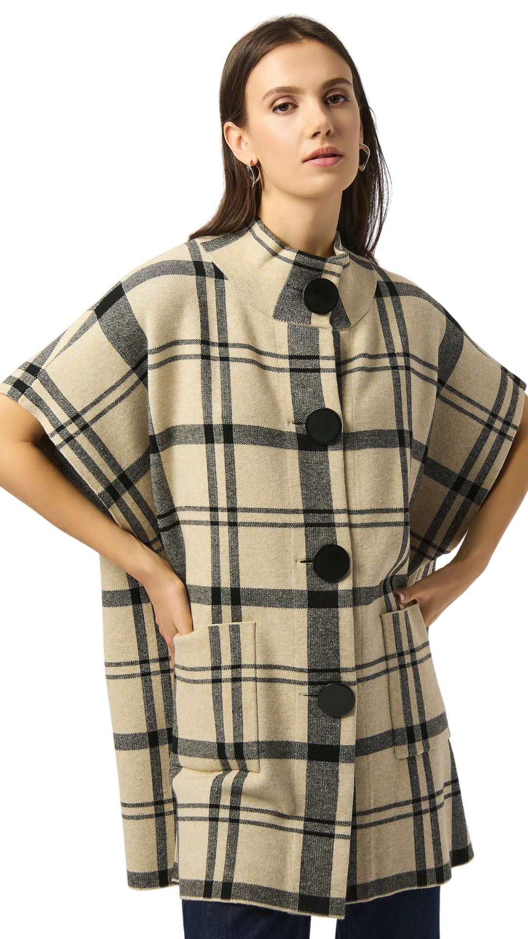 Plaid Knit Poncho Style Sweater. Style JR253903