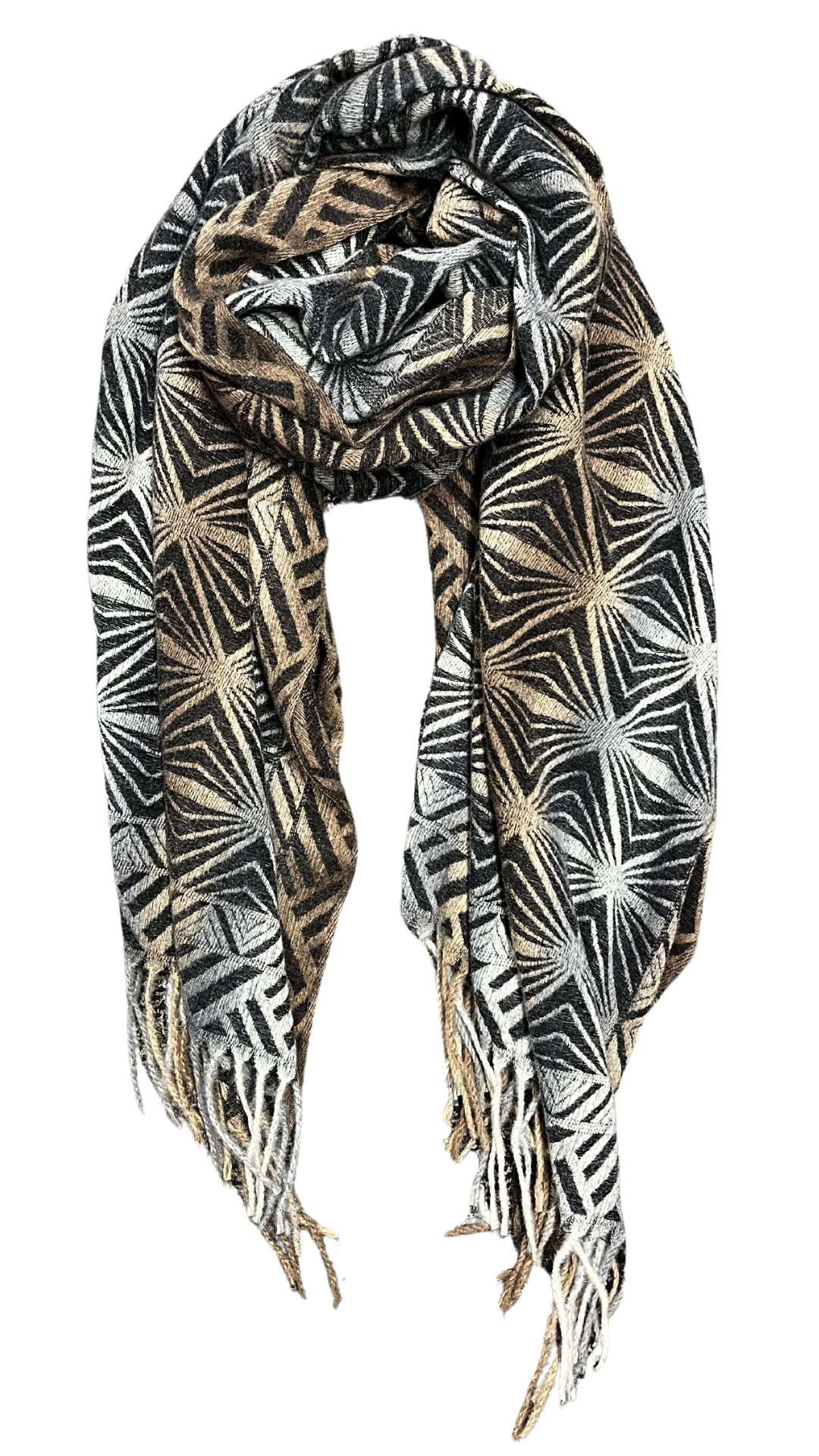 Black Triangle Print Blanket Scarf. Style ELWNANCY11-BLK