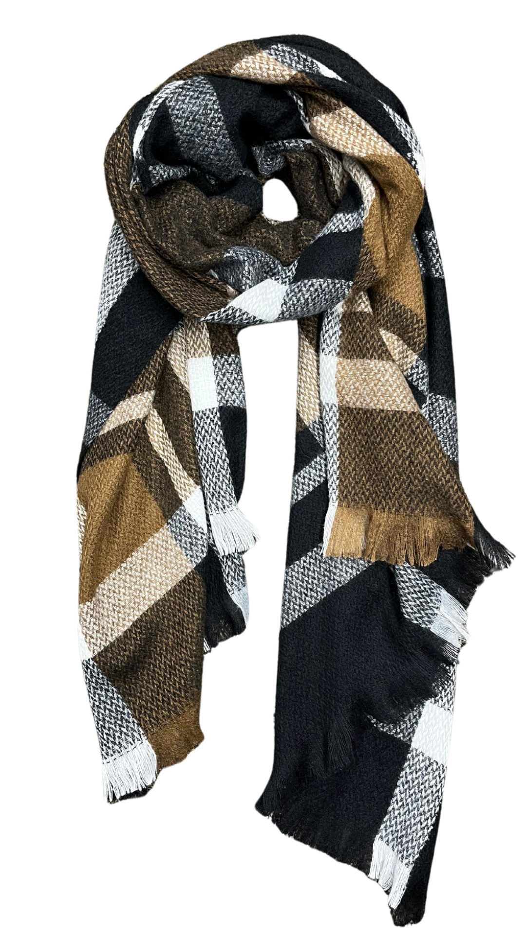Plaid Print Frayed Edge Blanket Scarf. Style ELWNANCY13-COF