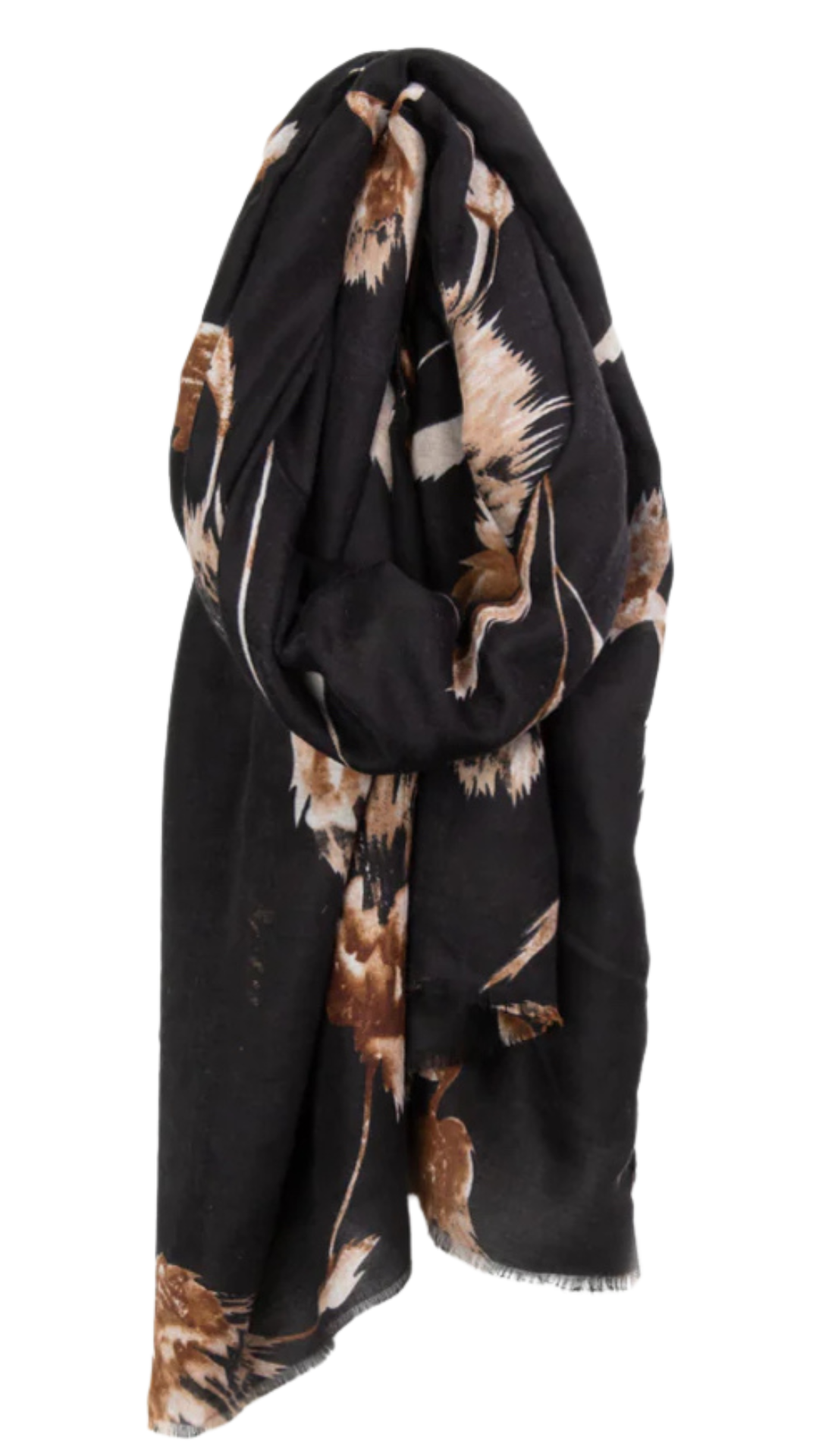 Black Floral Tapestry Print Foulard Scarf. Style CARA6175-BLK