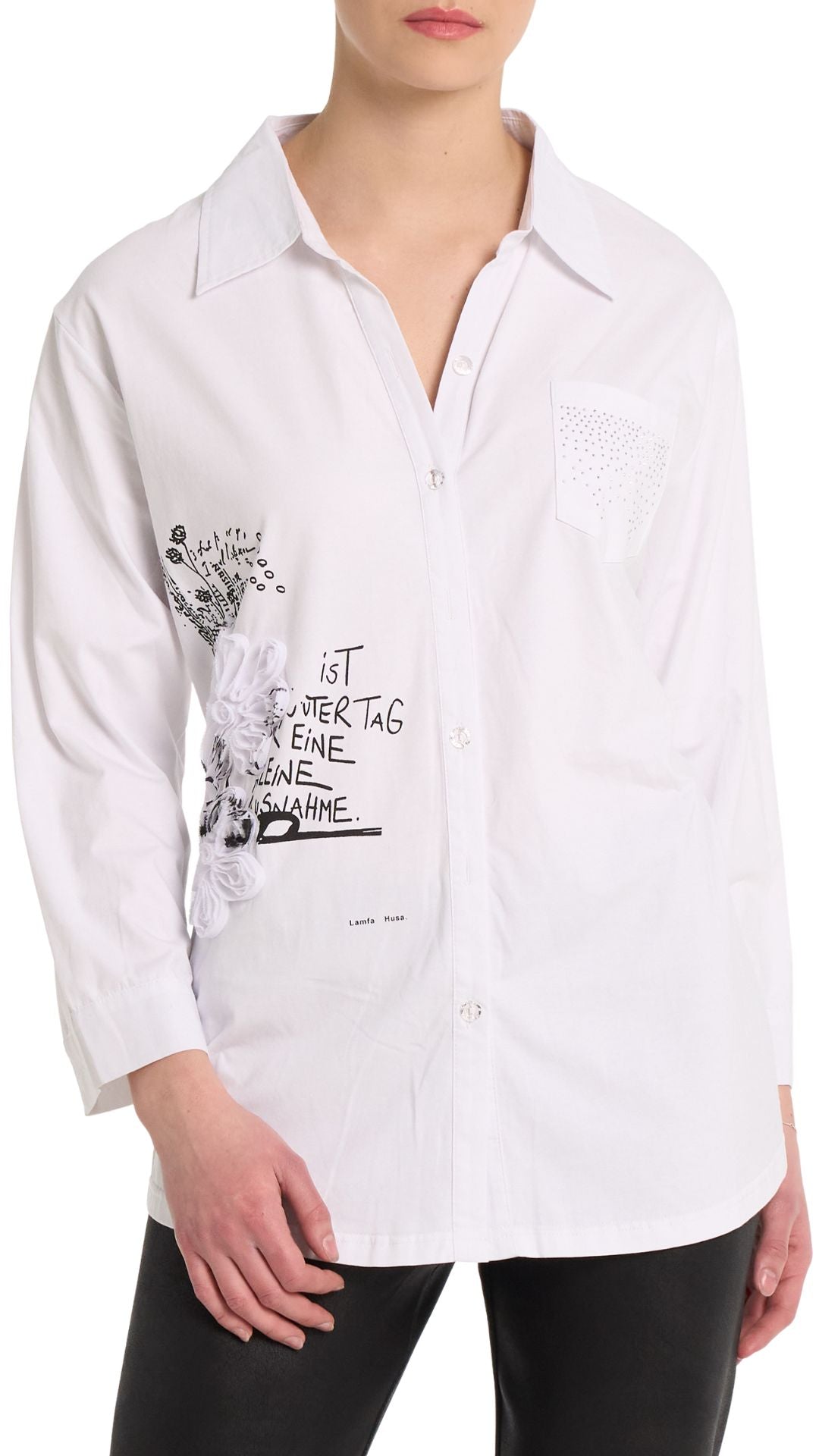 Flower & Sketching Detail Rhinestone Pocket Top. Style MIKBL2421