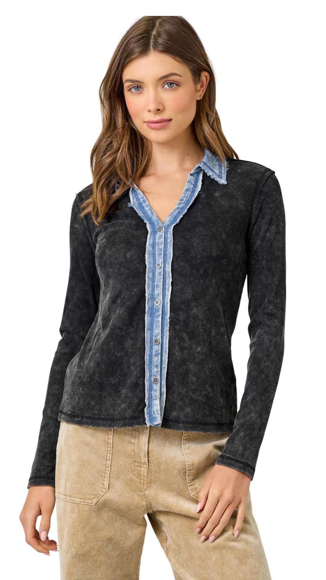 Button Front & Denim Edges Ribbed Shirt. Style MYS60719