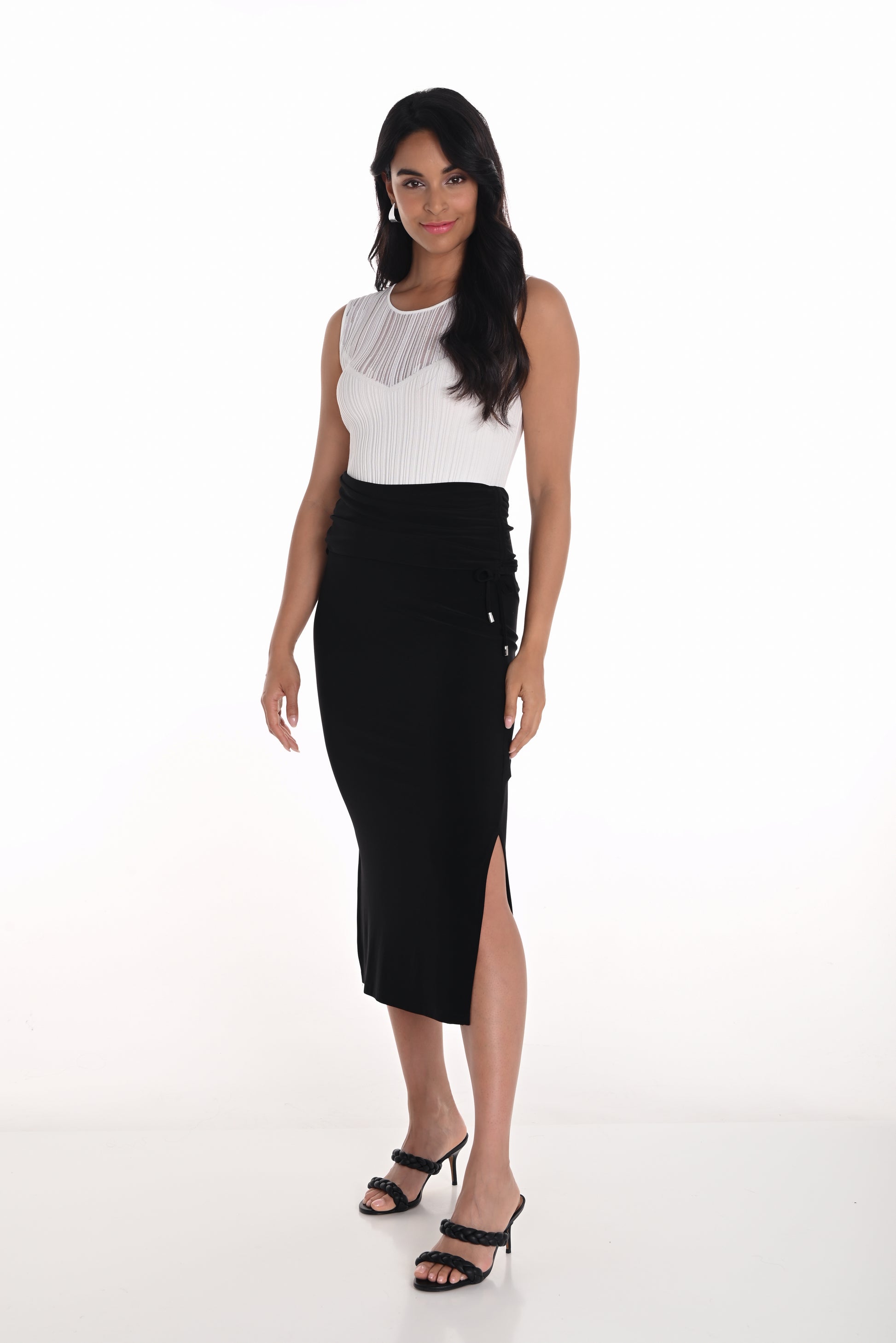Side Slit & Ruched Midi Skirt. Style FL251029