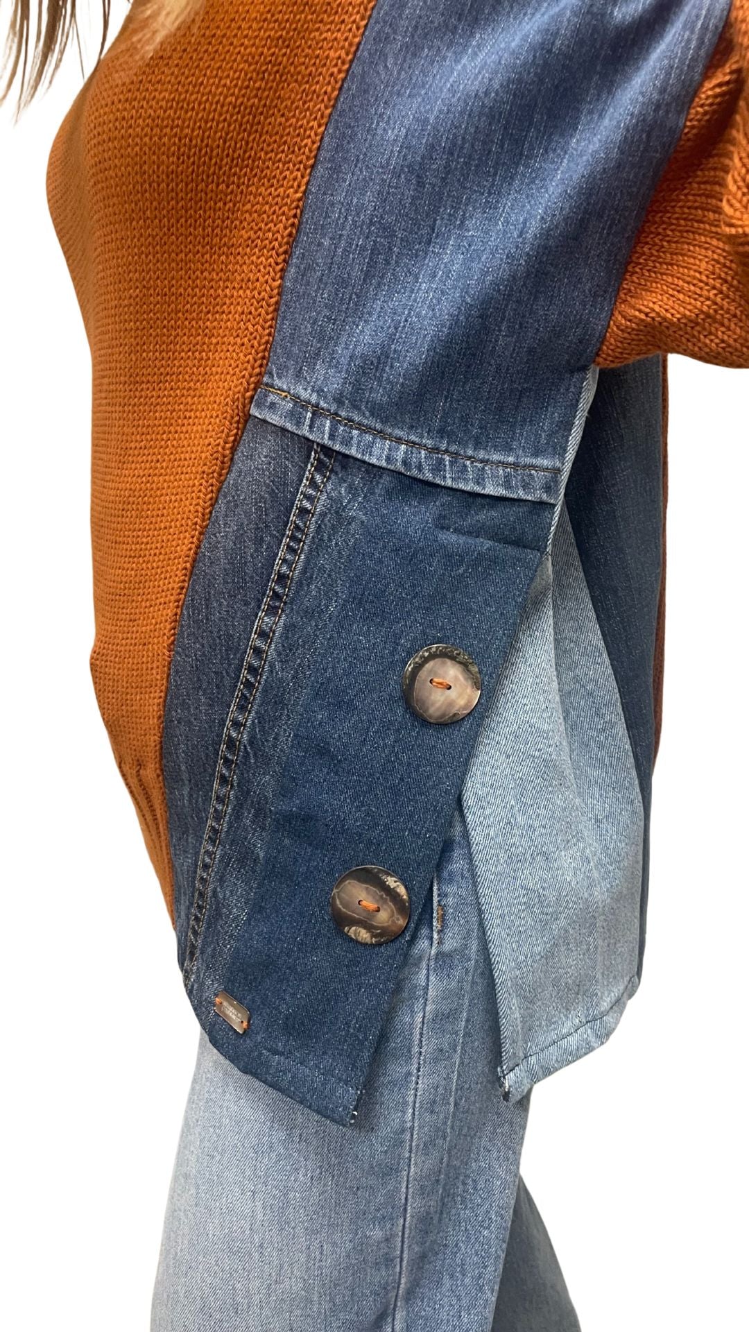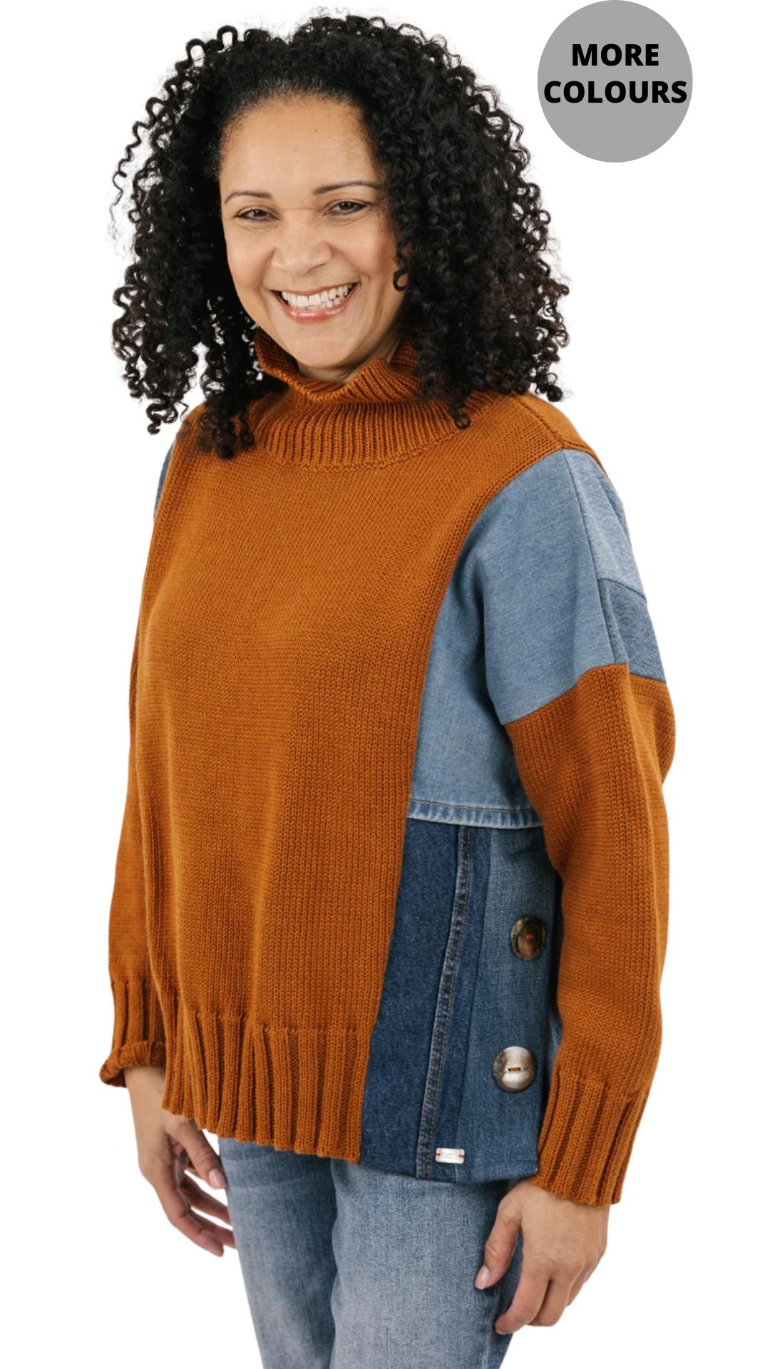 Funnel Neck Chunky Knit Upcycled Sweater. Style SHNP5378