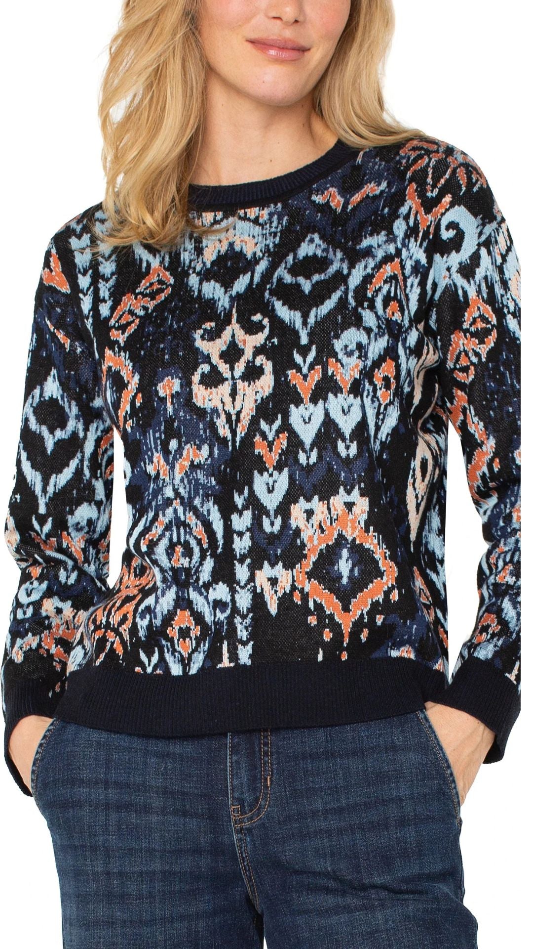 Drop Shoulder Crew Neck Patterned Sweater. Style LVLM8J12SR09J6